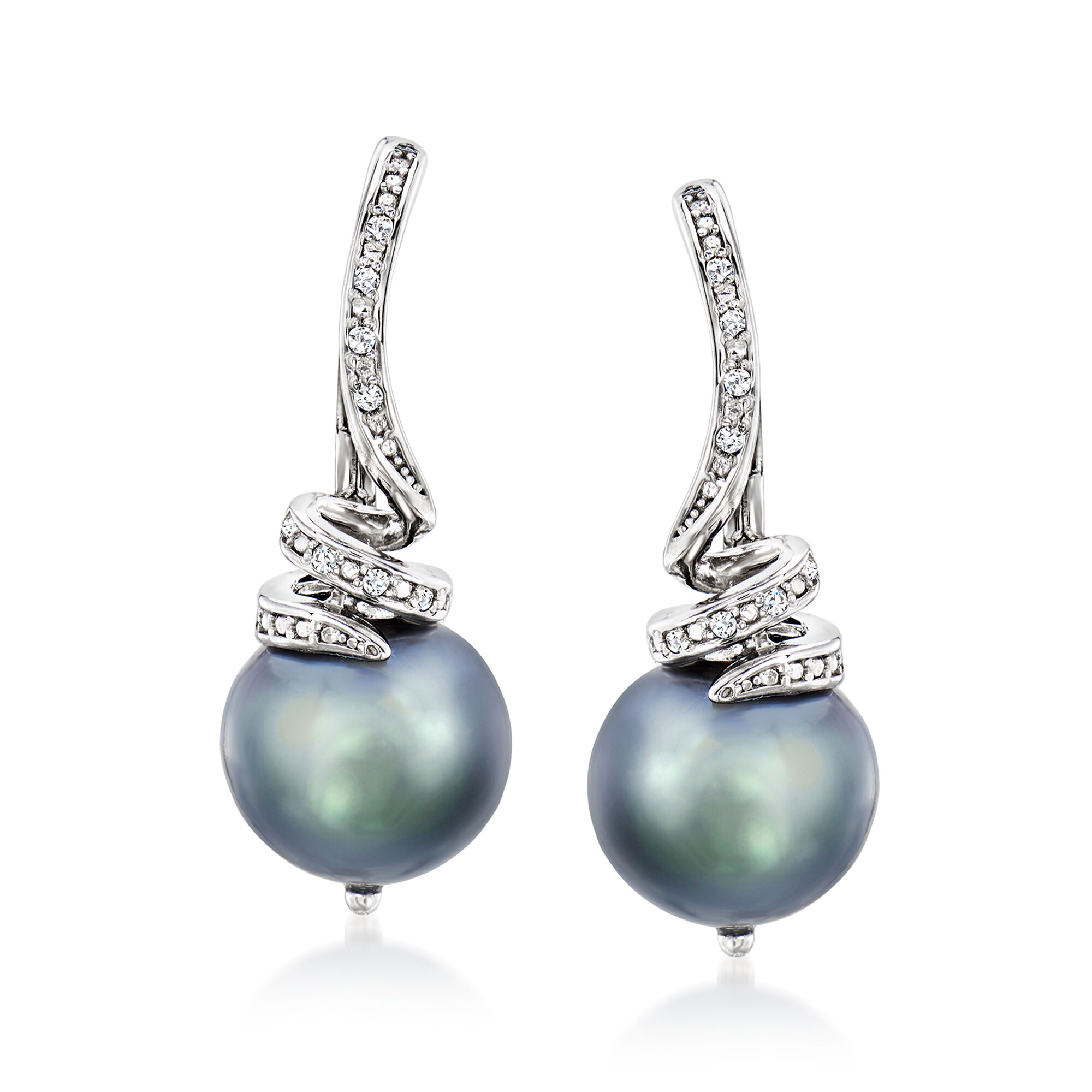 10-11mm Black Cultured Pearl and .10 ct. t.w. Diamond Drop Earrings in Sterling Silver