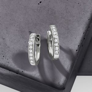 .50 ct. t.w. Lab-Grown Diamond Huggie Hoop Earrings in Sterling Silver. 1/2″