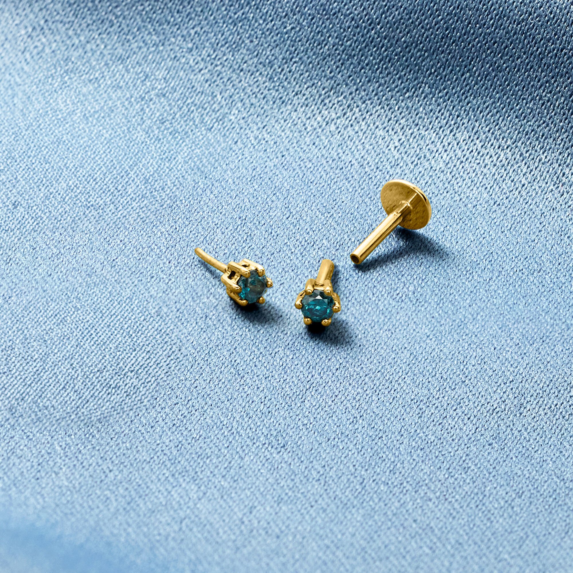 Diamond ( Color: Blue, Quantity: 2, Shape & Cutting Style: Round Brilliant, Clarity: I2-I3, Weight: 0.10 ct. t.w.) |