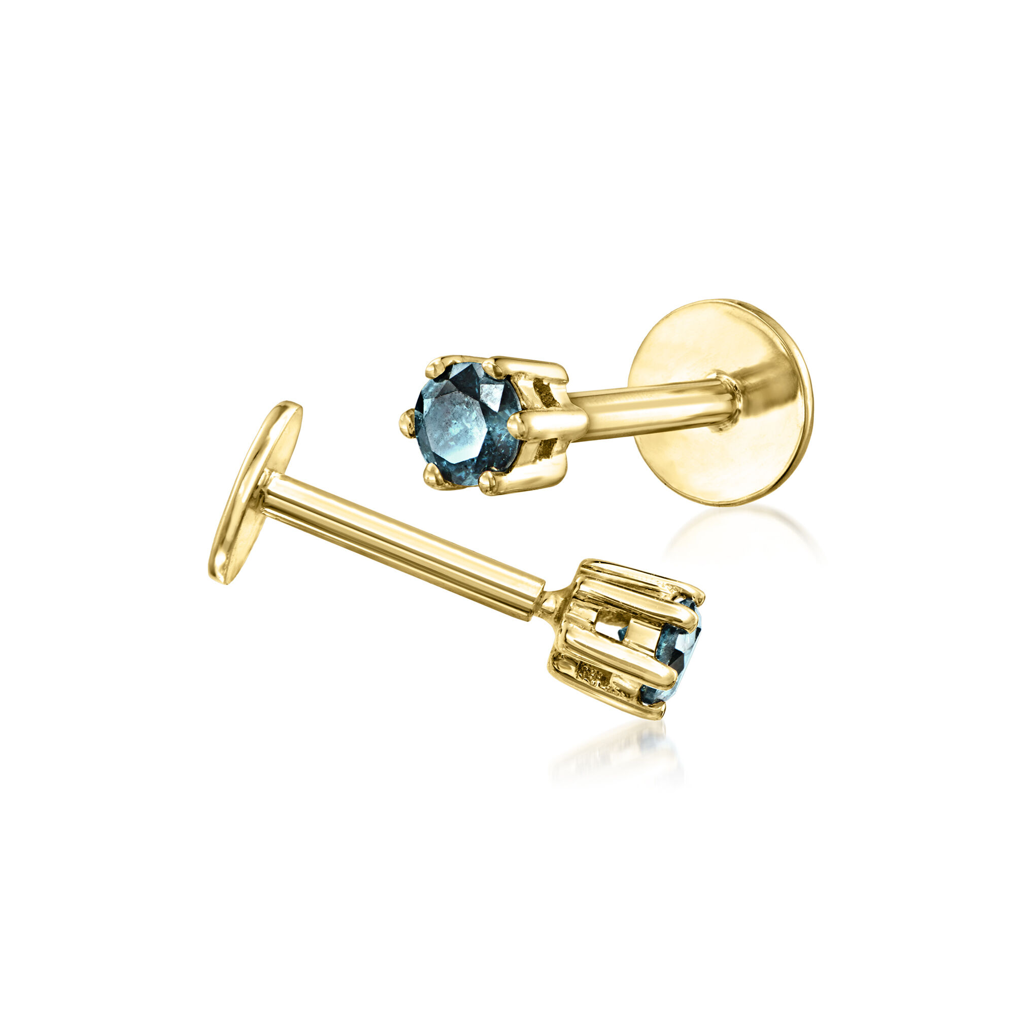 .10 ct. t.w. Blue Diamond Flat-Back Stud Earrings in 14kt Yellow Gold
