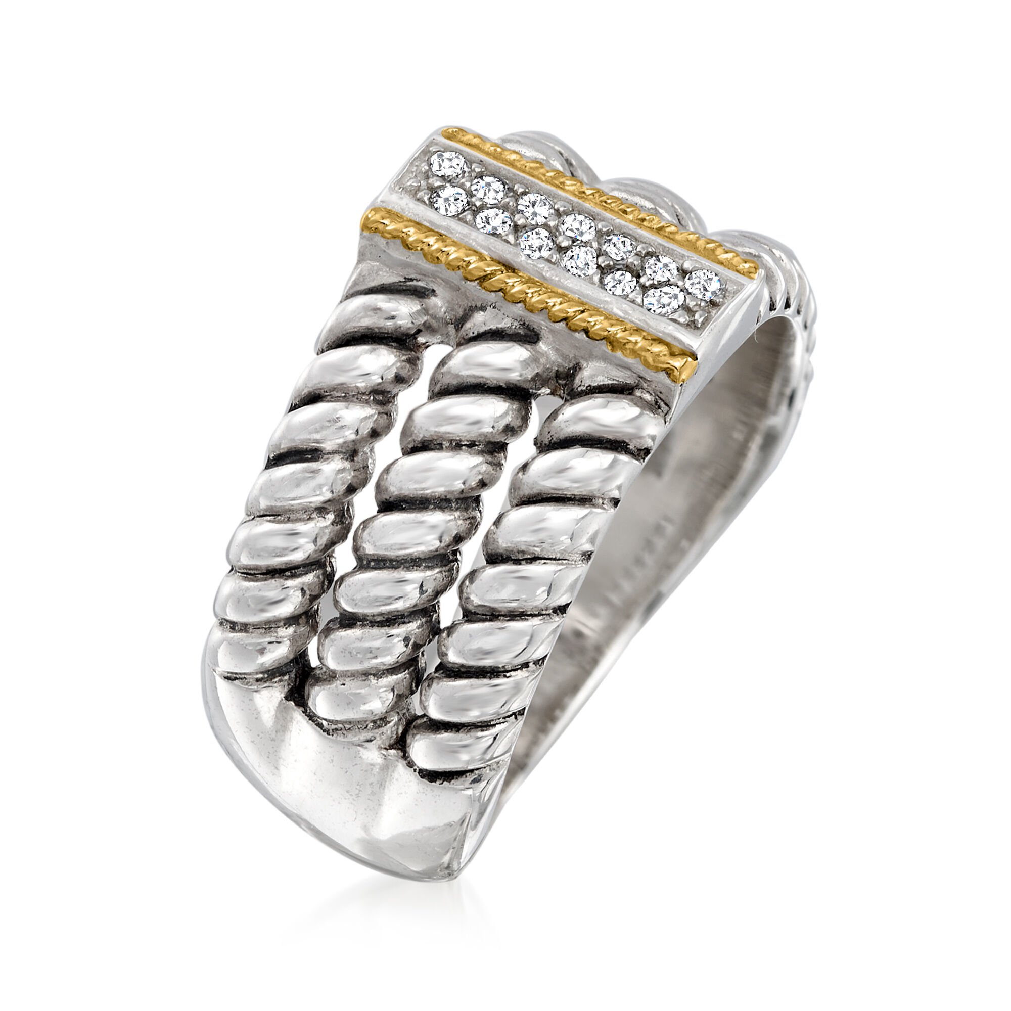 .10 ct. t.w. CZ Three-Row Ring in Sterling Silver and 14kt Yellow Gold