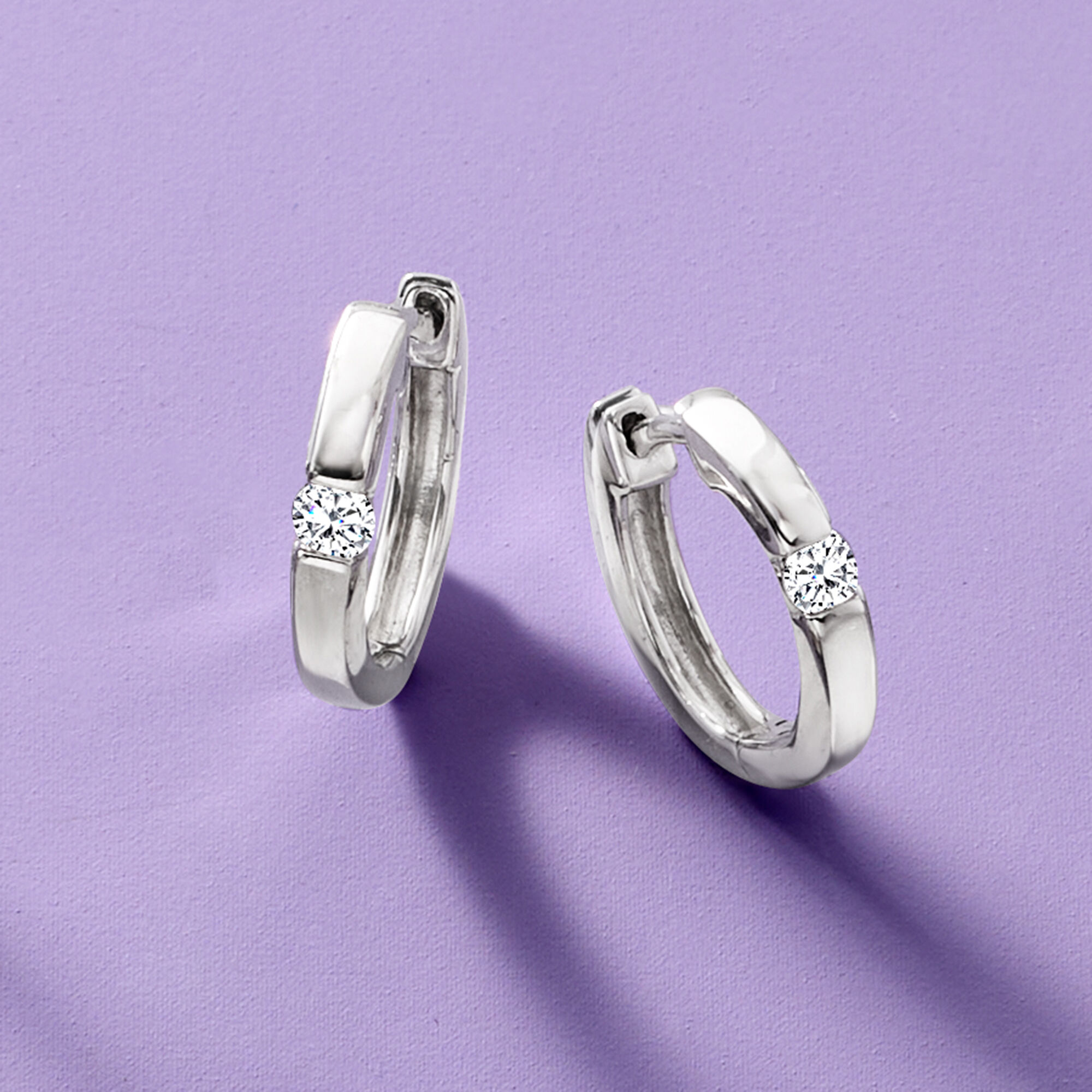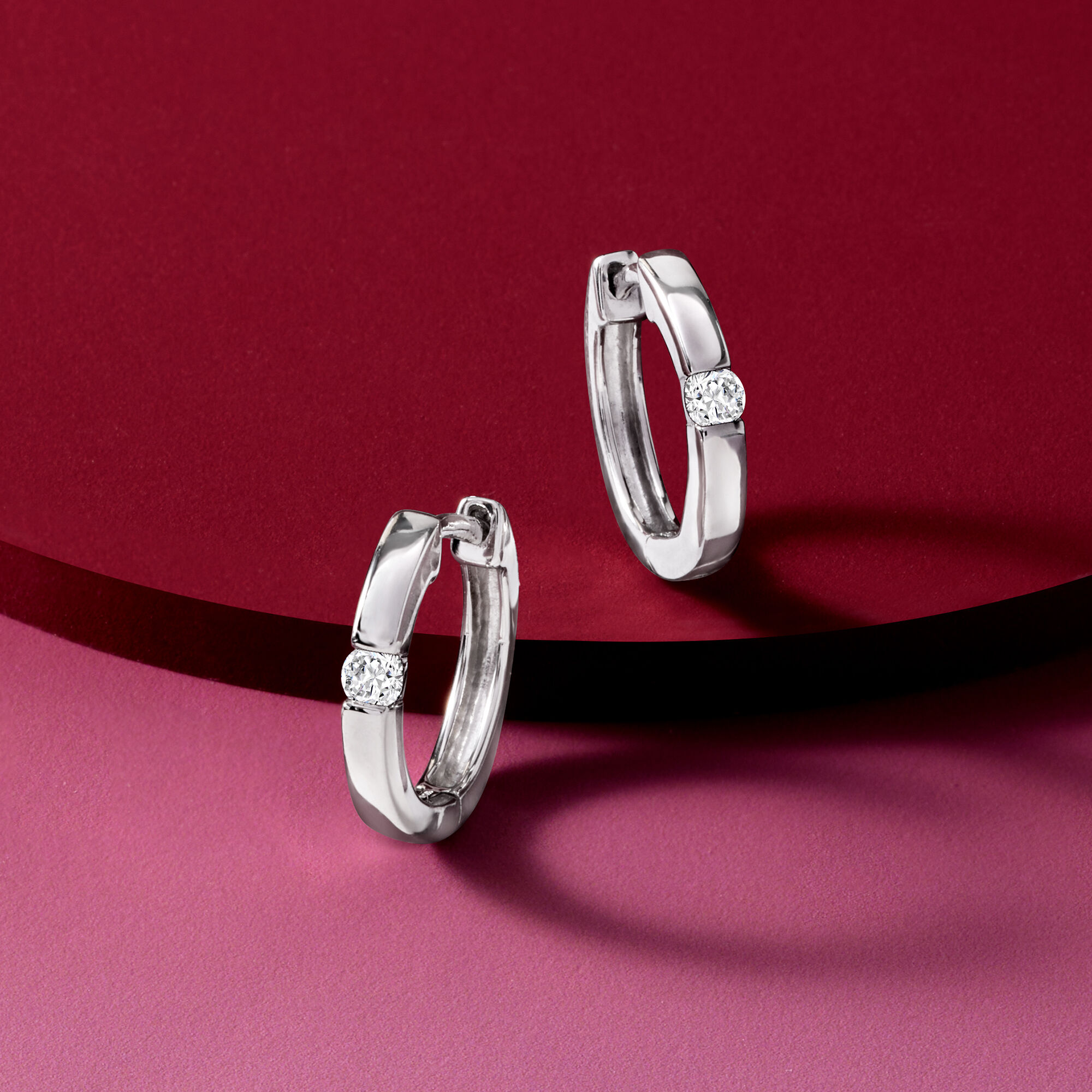 .10 ct. t.w. Diamond Hoop Earrings in Sterling Silver. 1/2″