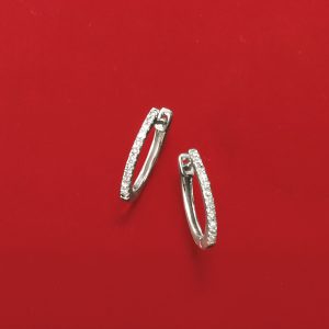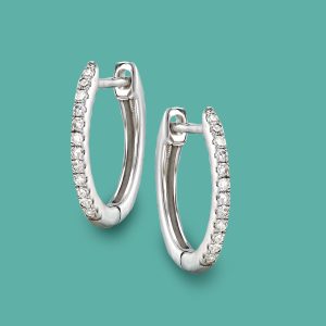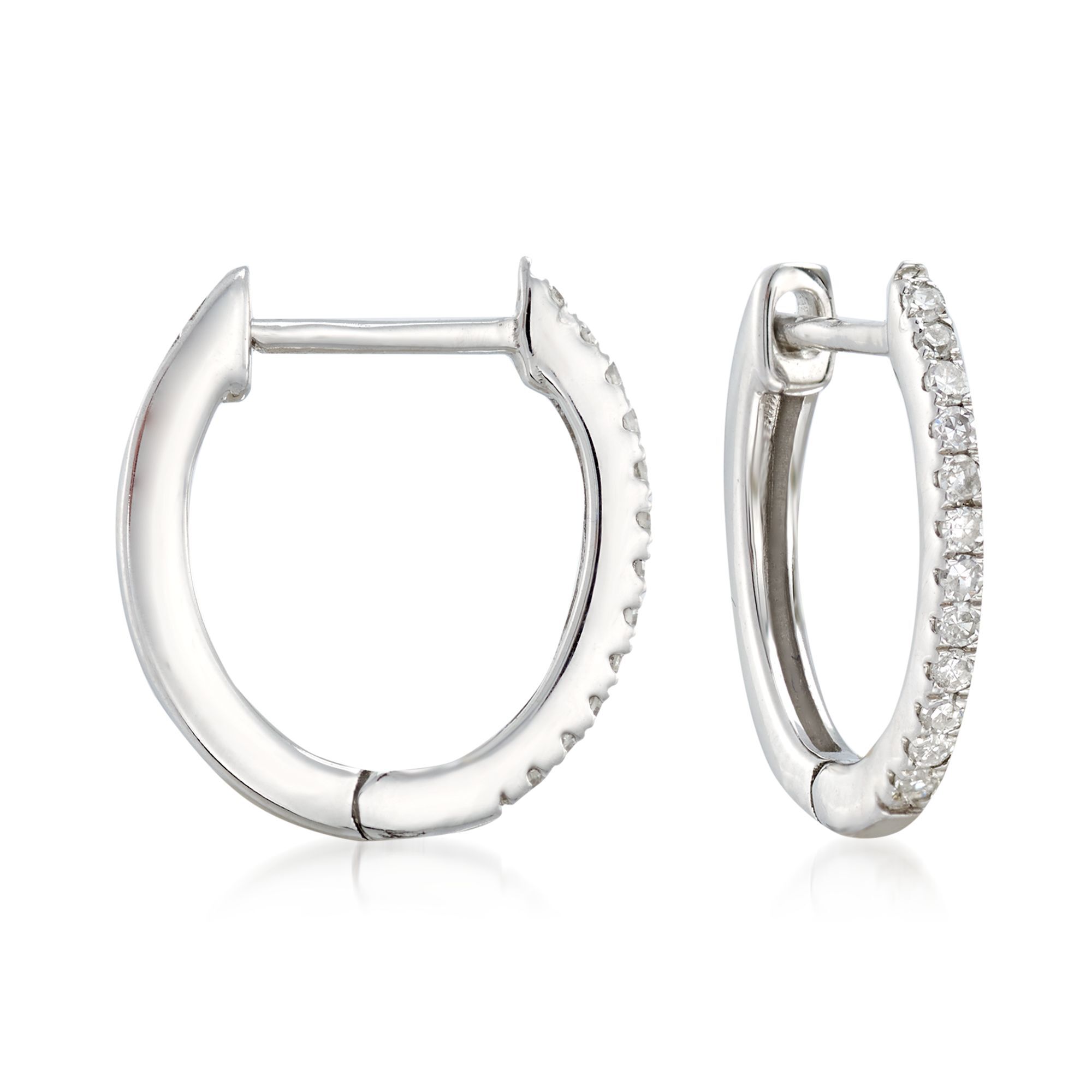 .10 ct. t.w. Diamond Huggie Hoop Earrings in 14kt White Gold. 3/8″