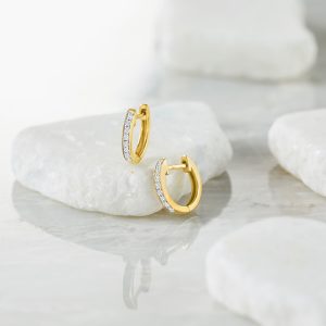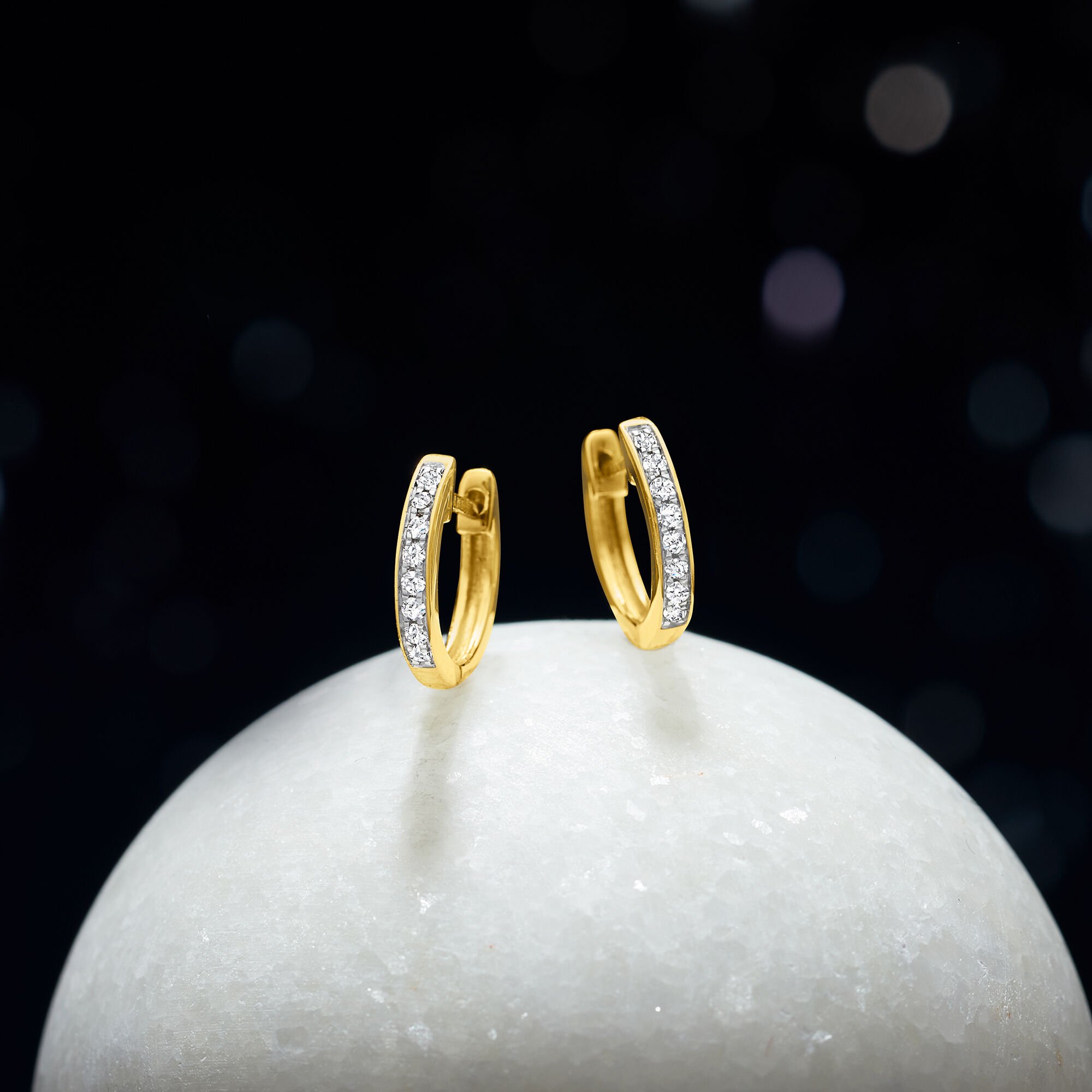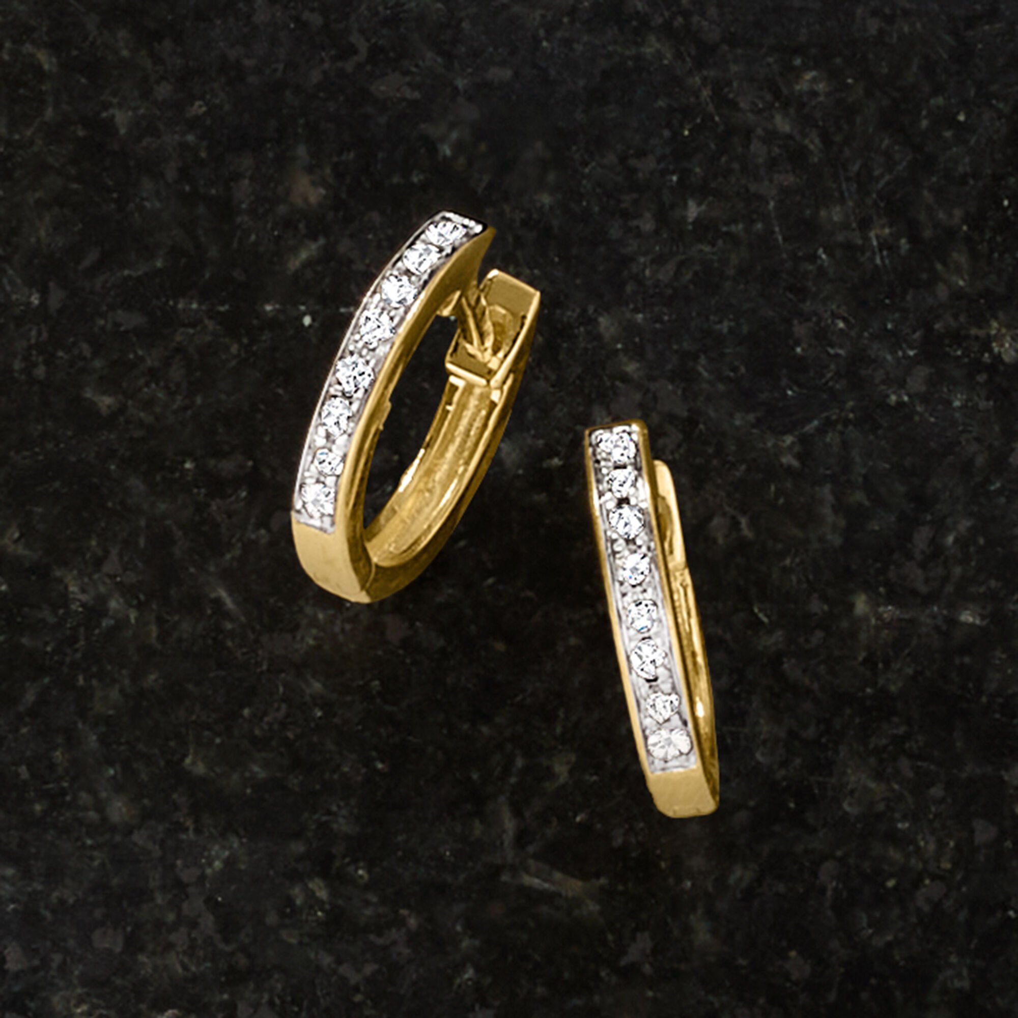 .10 ct. t.w. Diamond Huggie Hoop Earrings in 14kt Yellow Gold. 1/4″