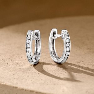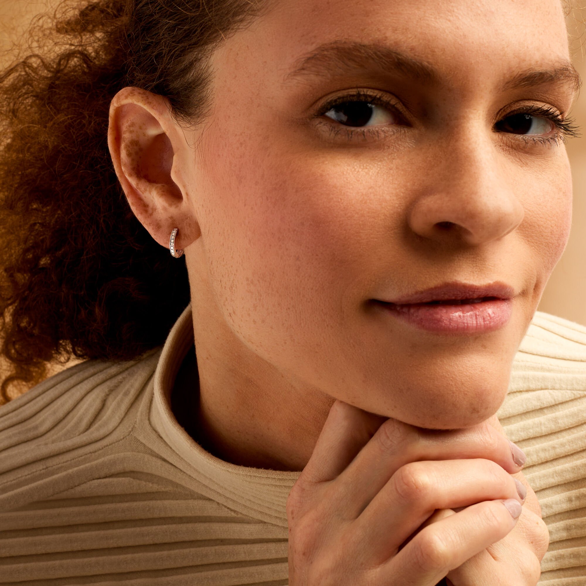 .10 ct. t.w. Diamond Huggie Hoop Earrings in Sterling Silver. 1/4″