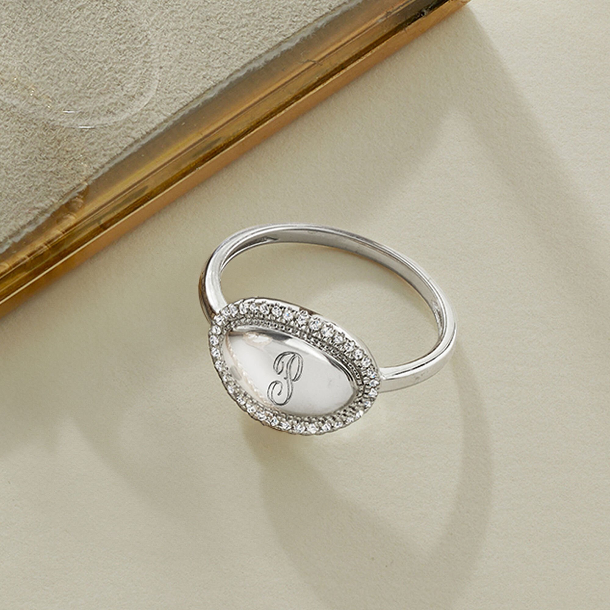 .10 ct. t.w. Diamond Personalized Oval Ring in Sterling Silver