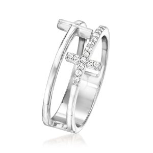 .10 ct. t.w. Diamond Two-Row Cross Ring in Sterling Silver