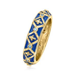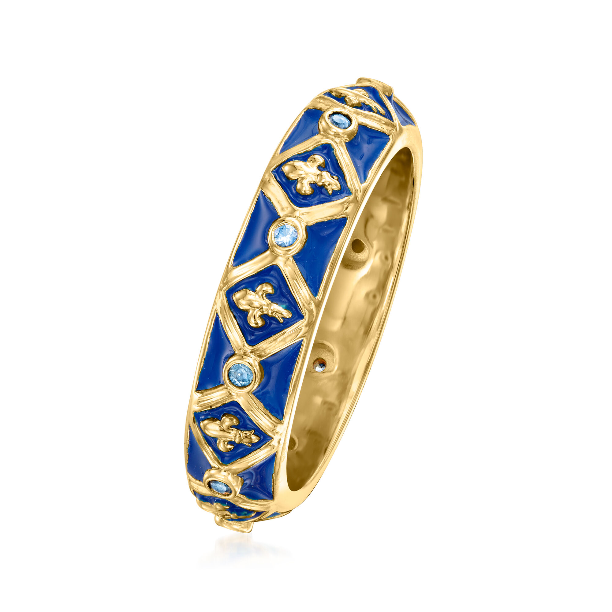 .10 ct. t.w. Sapphire and Blue Enamel Fleur-De-Lis Ring in 18kt Gold Over Sterling
