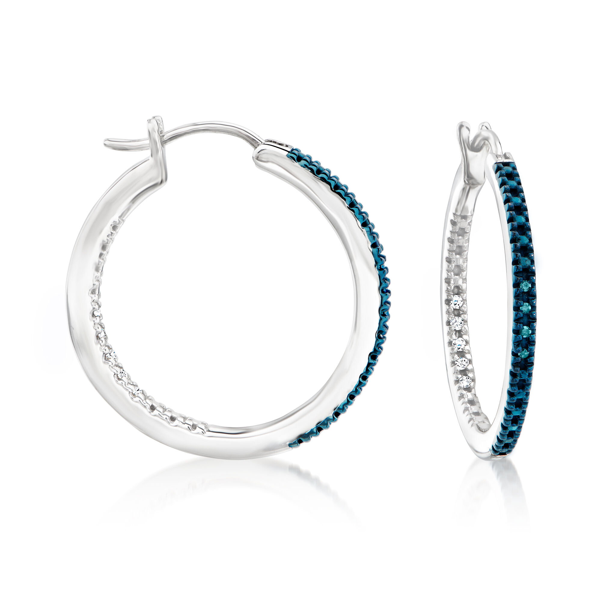 .10 ct. t.w. White and Blue Diamond Inside-Outside Hoop Earrings in Sterling Silver. 1″