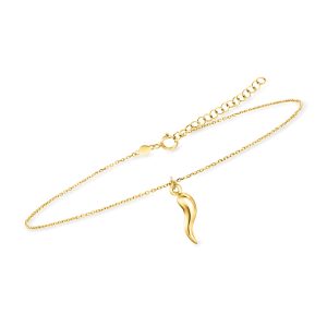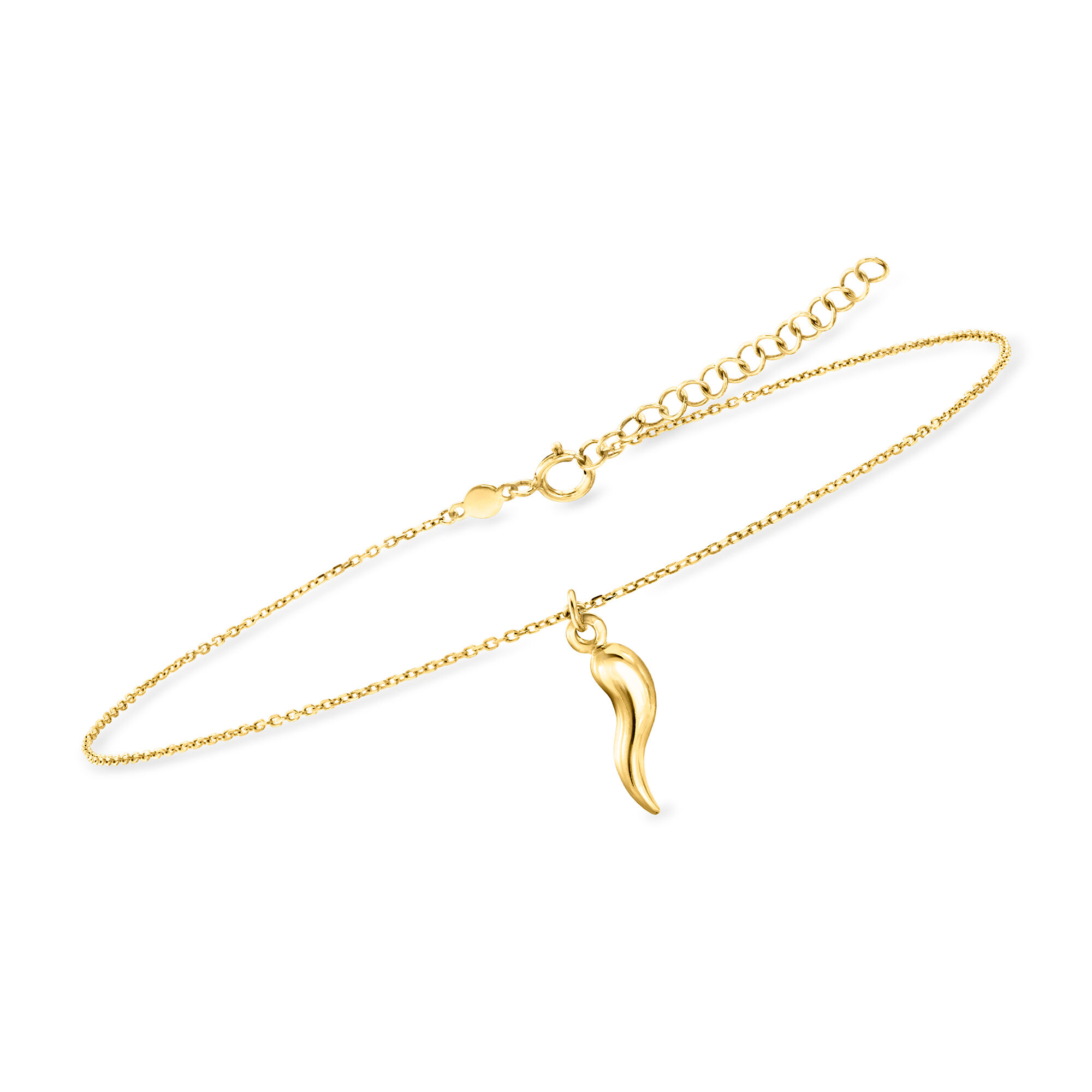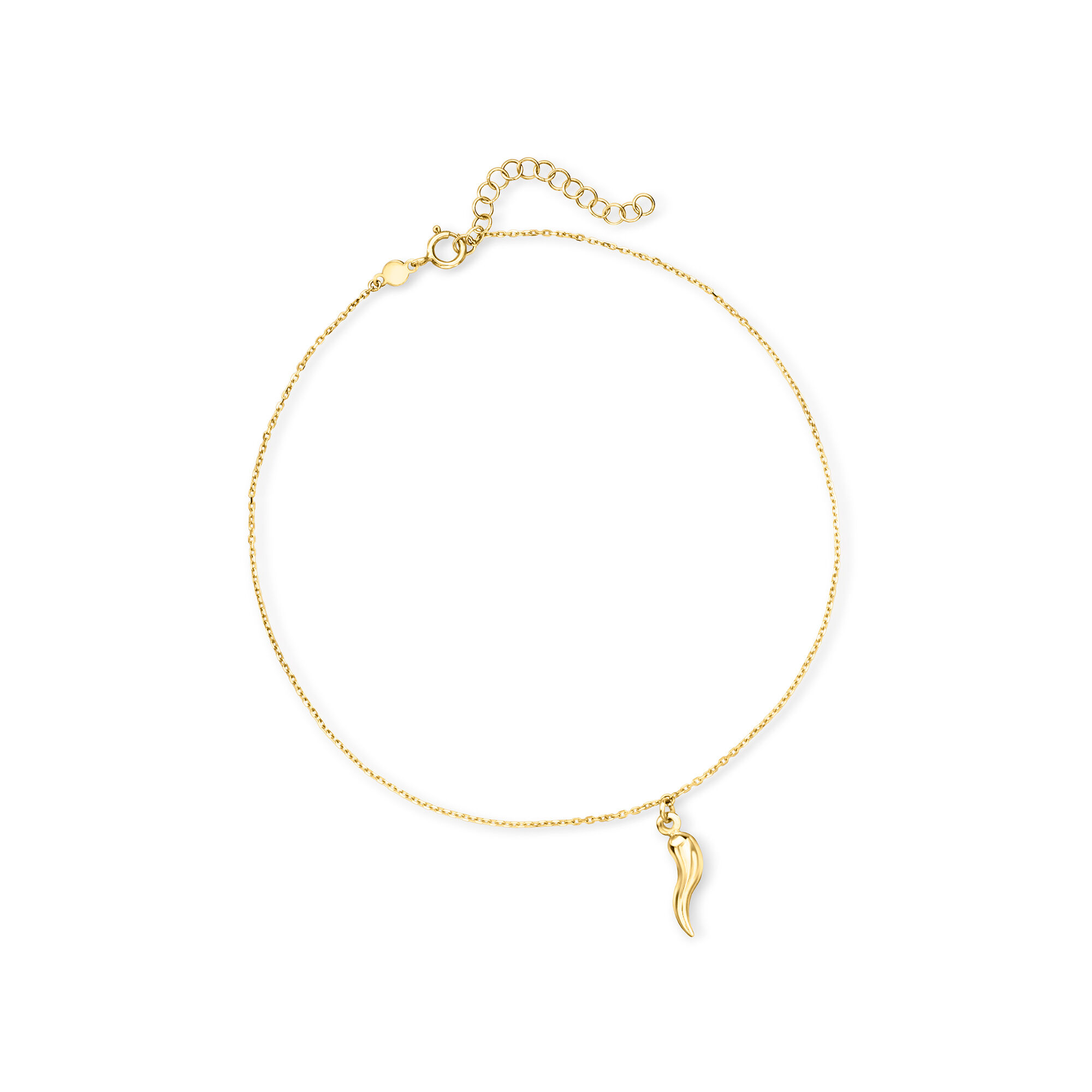 10kt Yellow Gold Italian Horn Anklet. 9″