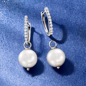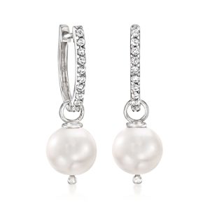 10mm Cultured Pearl and .40 ct. t.w. White Topaz Removable Hoop Drop Earrings in Sterling Silver