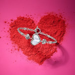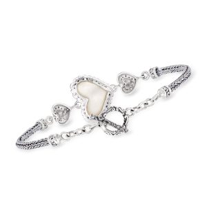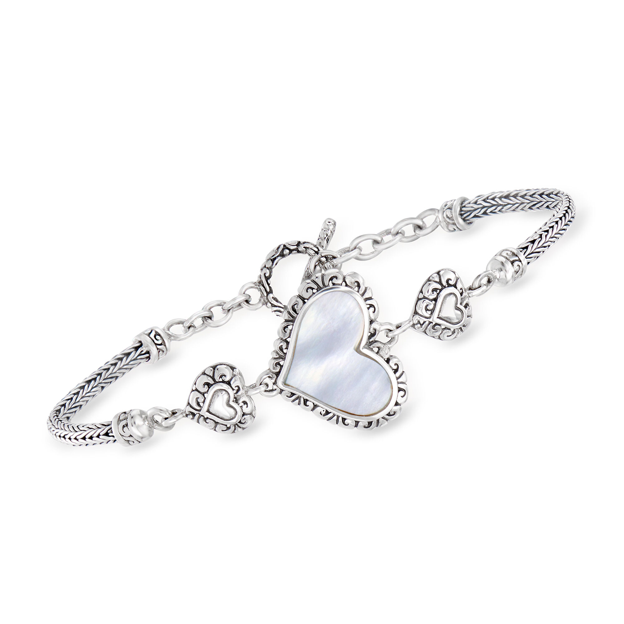 10x15mm Mother-of-Pearl Bali-Style Heart Bracelet in Sterling Silver
