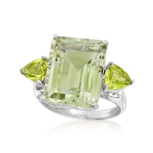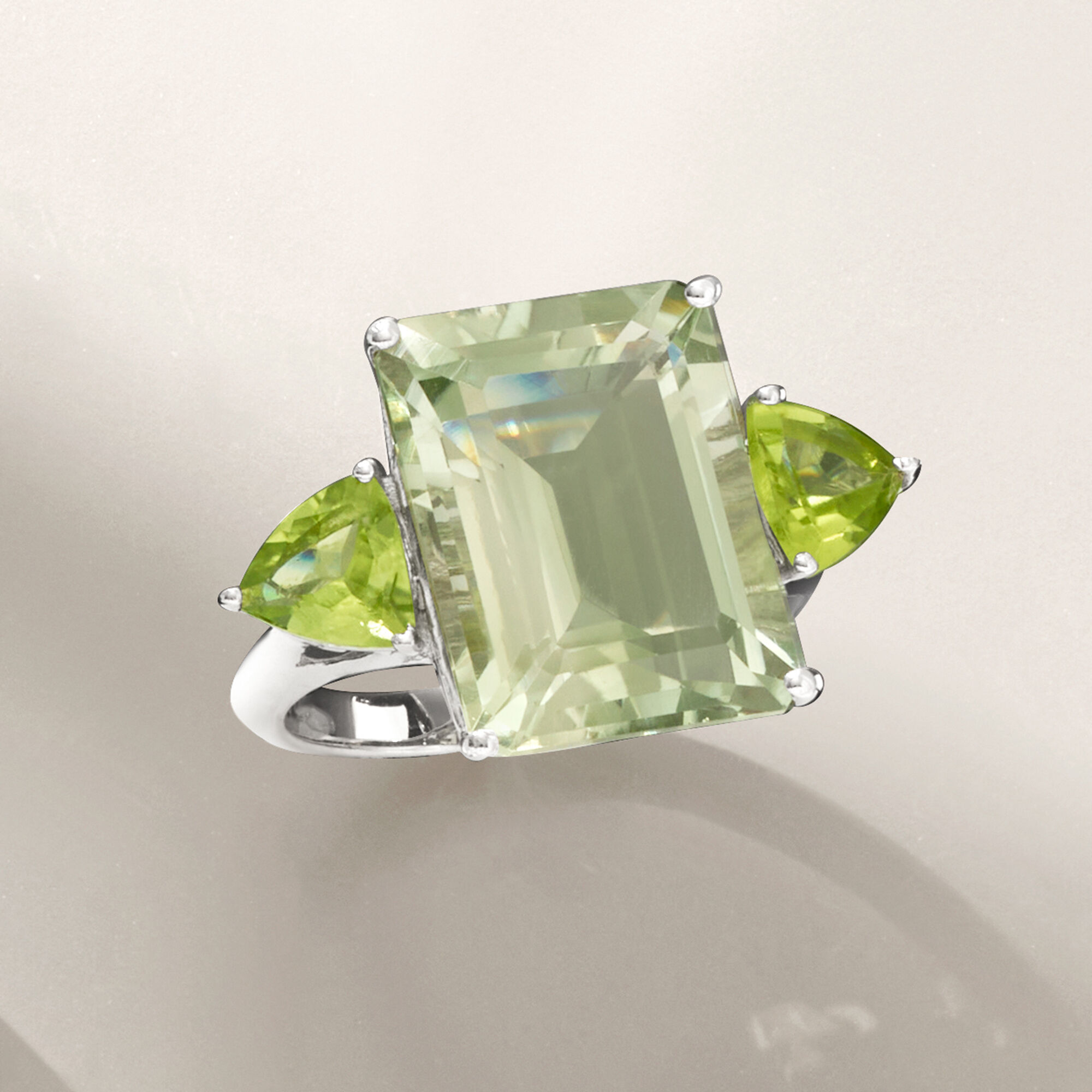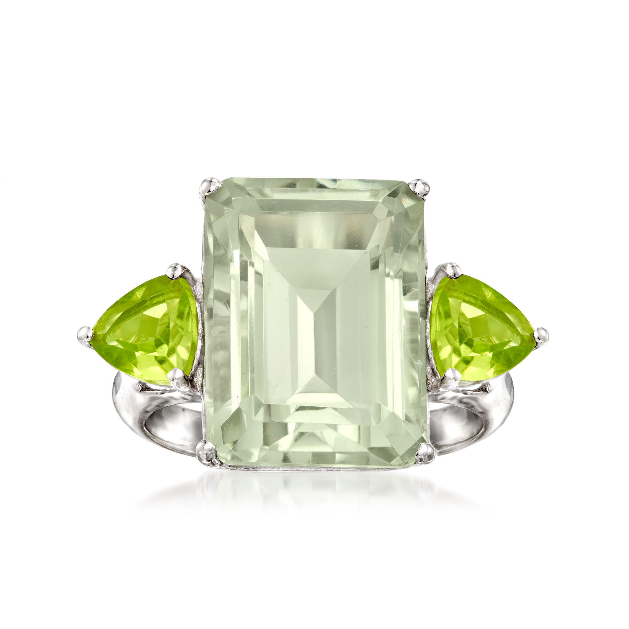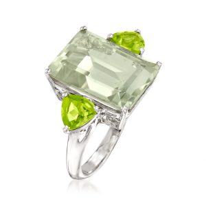 11.00 Carat Emerald-Cut Prasiolite and 1.40 ct. t.w. Peridot Ring in Sterling Silver