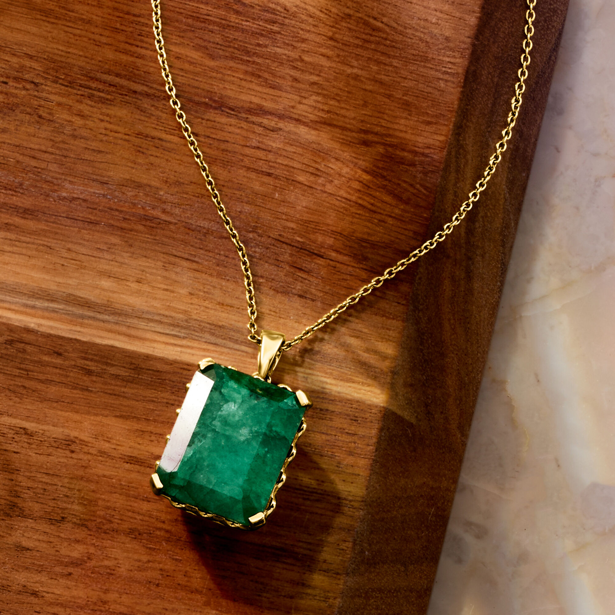 11.00 Carat Emerald Pendant Necklace in 18kt Gold Over Sterling. 18″