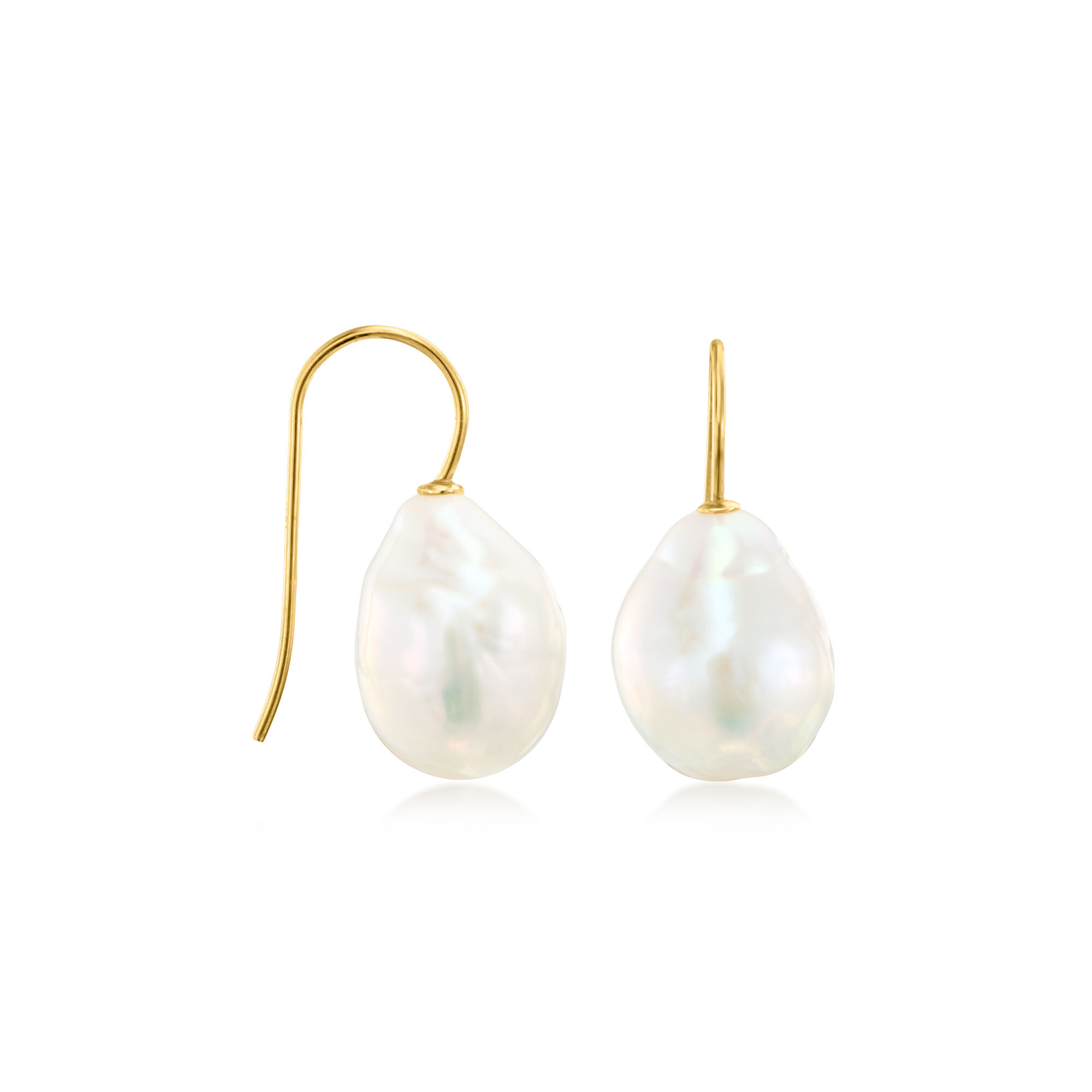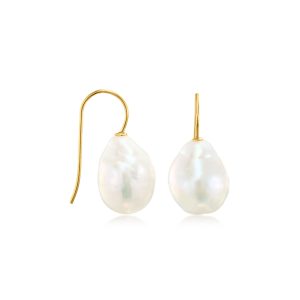 11-12mm Cultured Baroque Pearl Drop Earrings with 14kt Yellow Gold