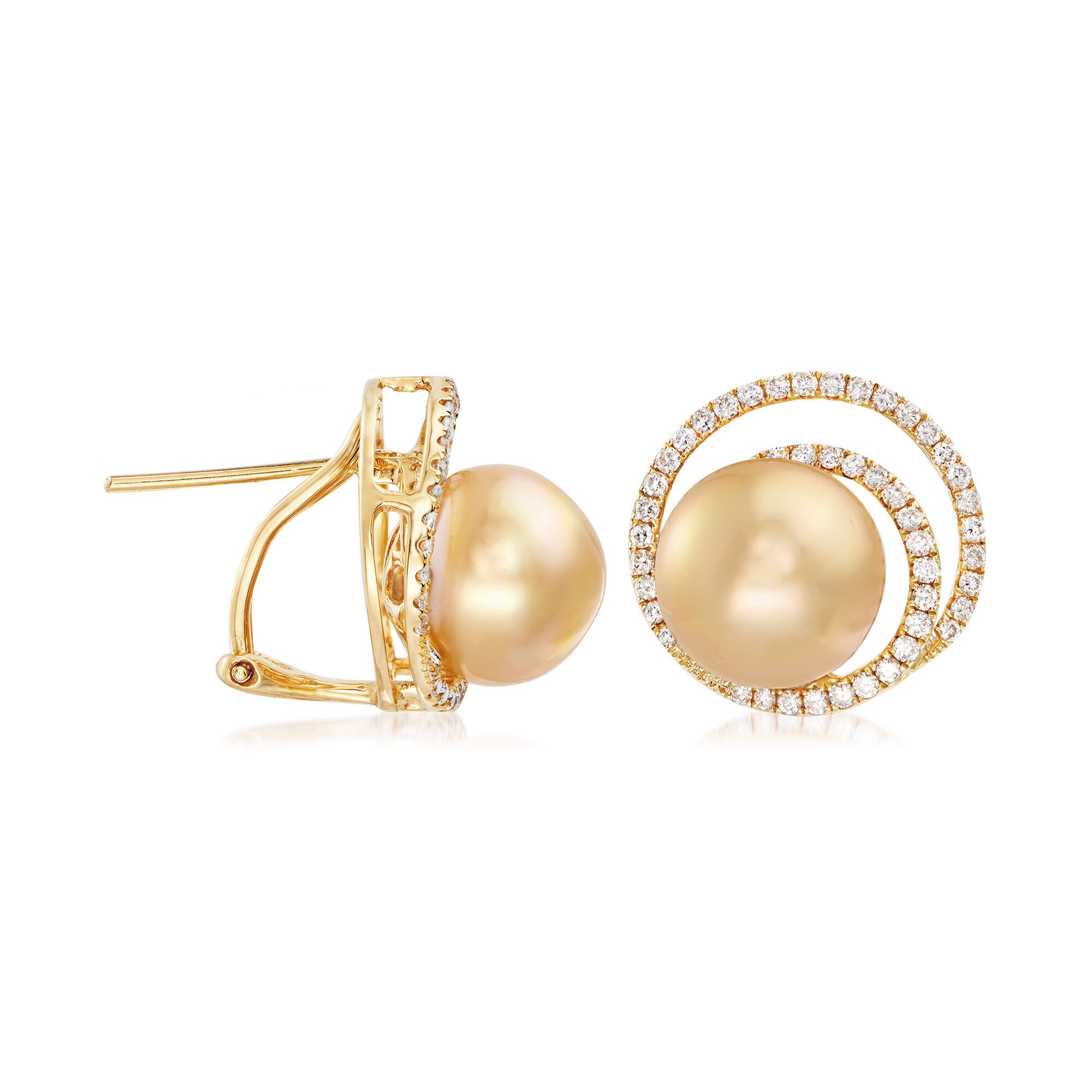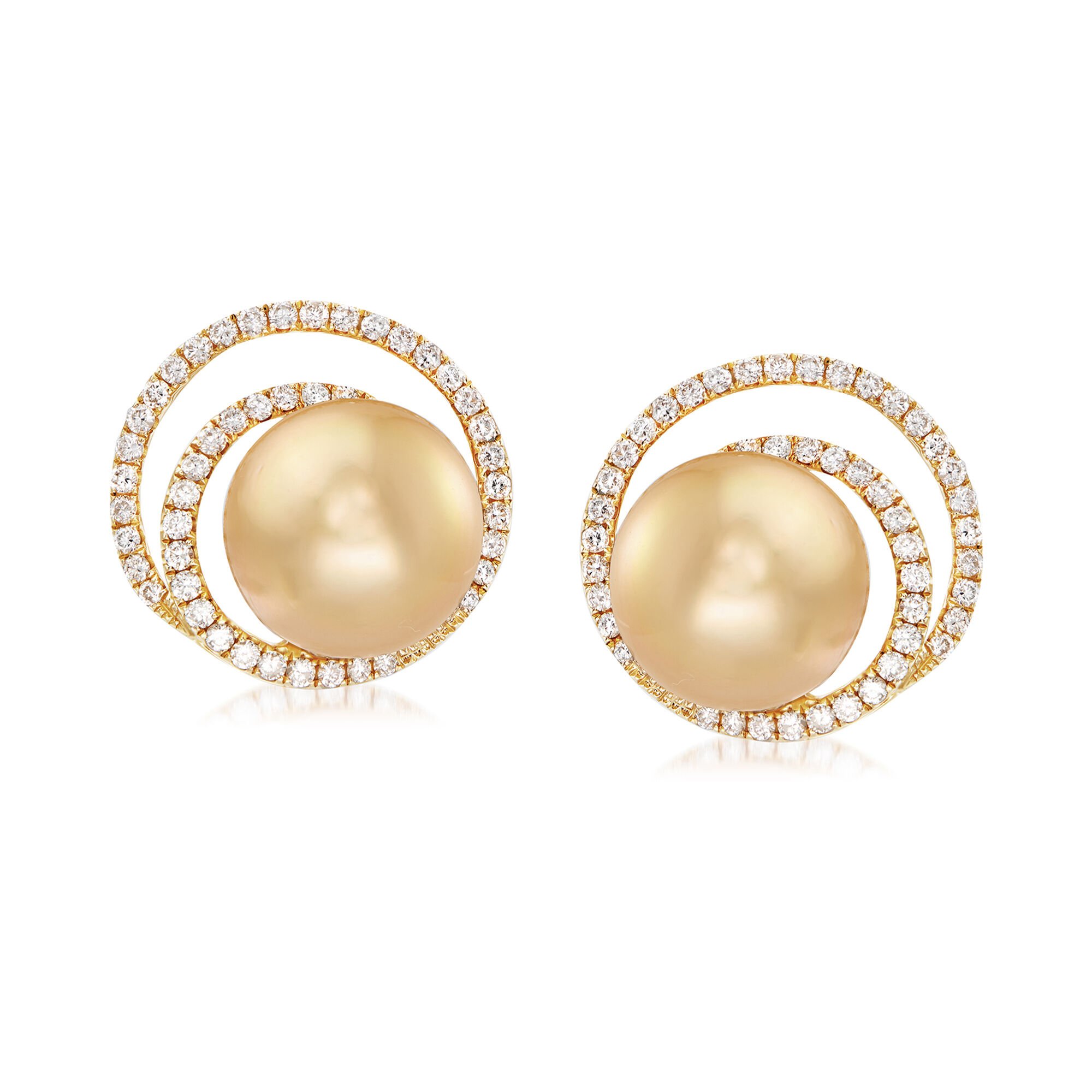 11mm Cultured Golden South Sea Pearl and .80 ct. t.w. Diamond Swirl Earrings in 18kt Yellow Gold