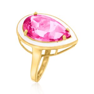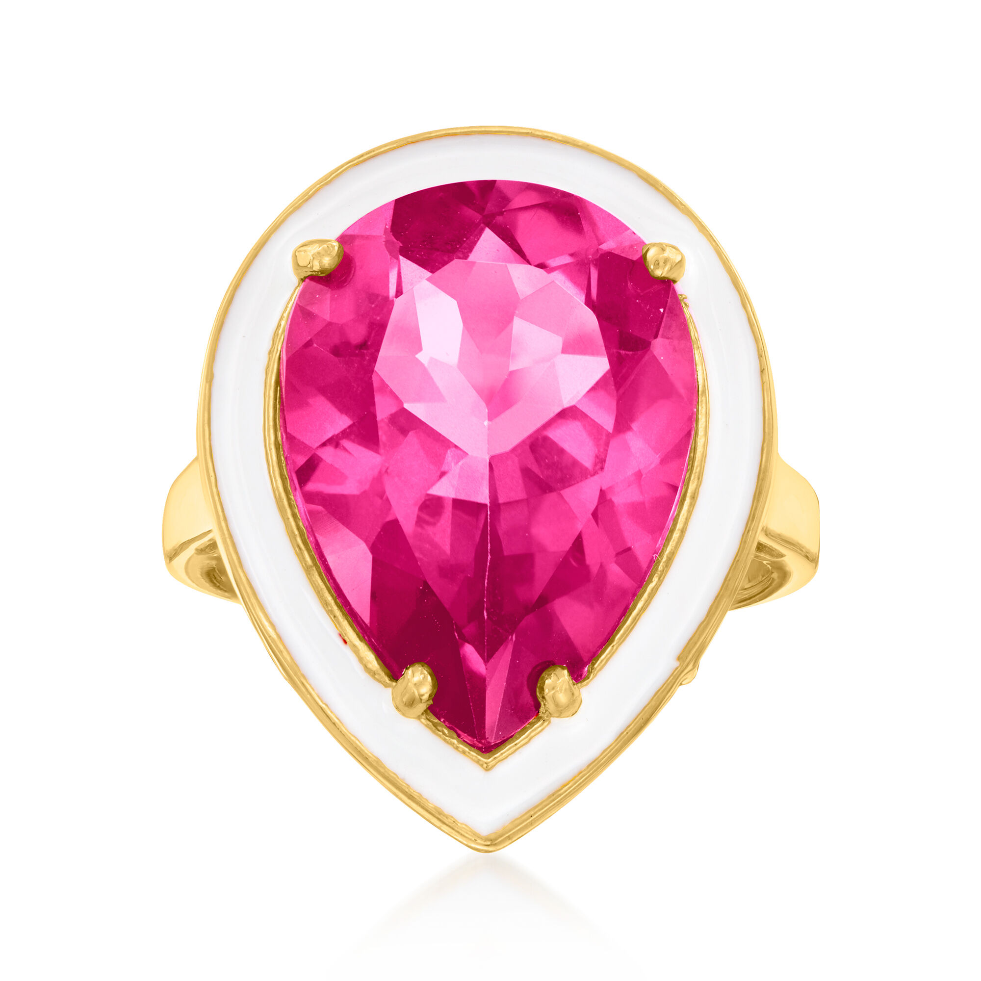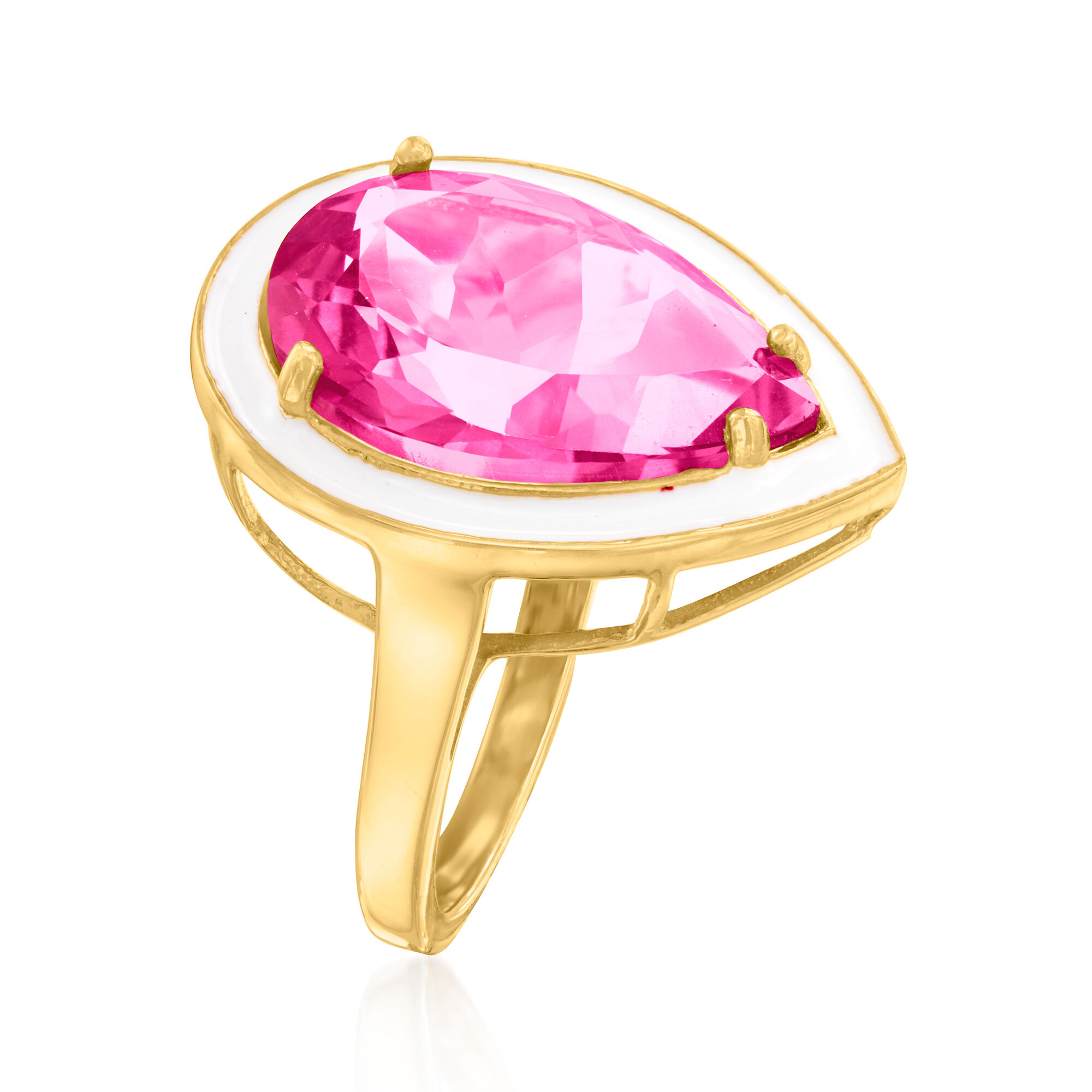 12.00 Carat Pink Topaz Ring with White Enamel in 18kt Gold Over Sterling