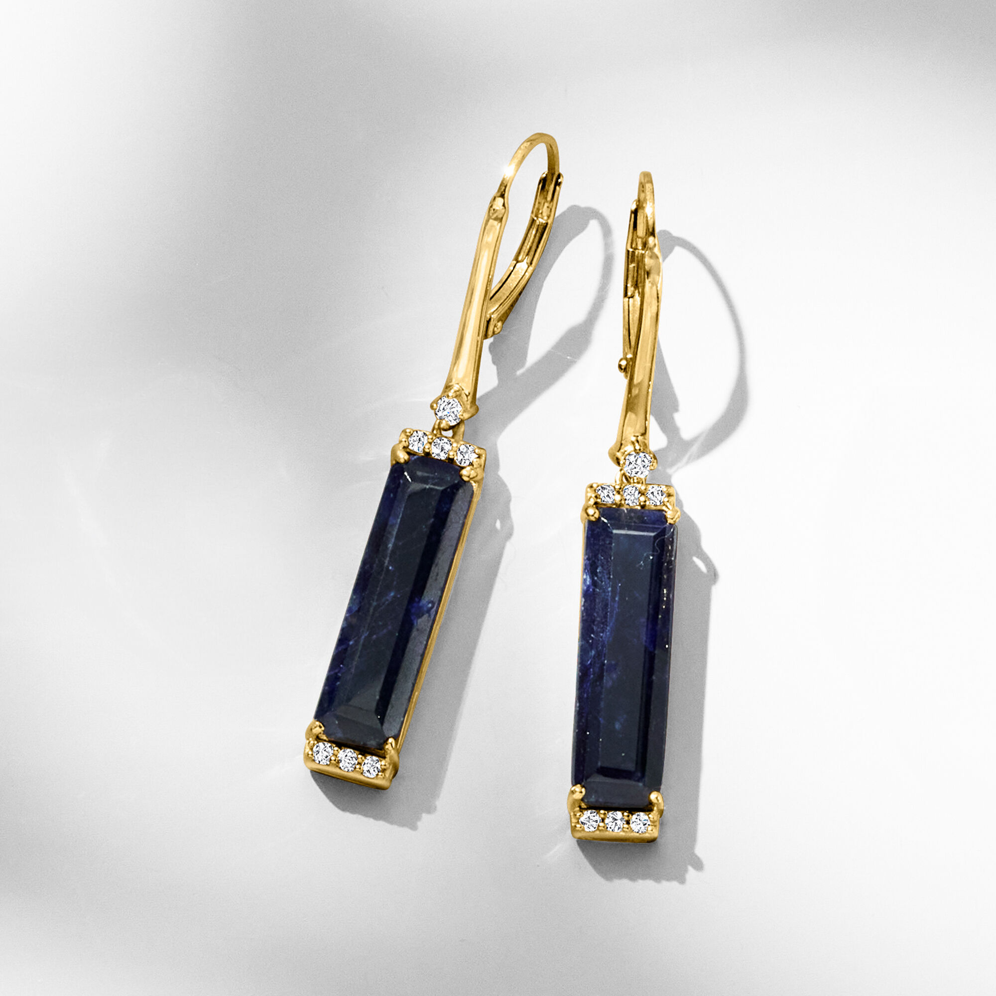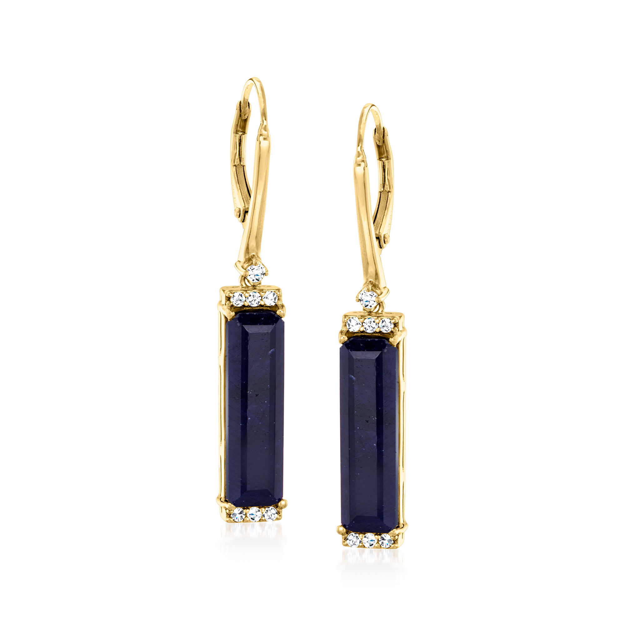 12.00 ct. t.w. Sapphire Drop Earrings with .30 ct. t.w. White Topaz in 18kt Gold Over Sterling