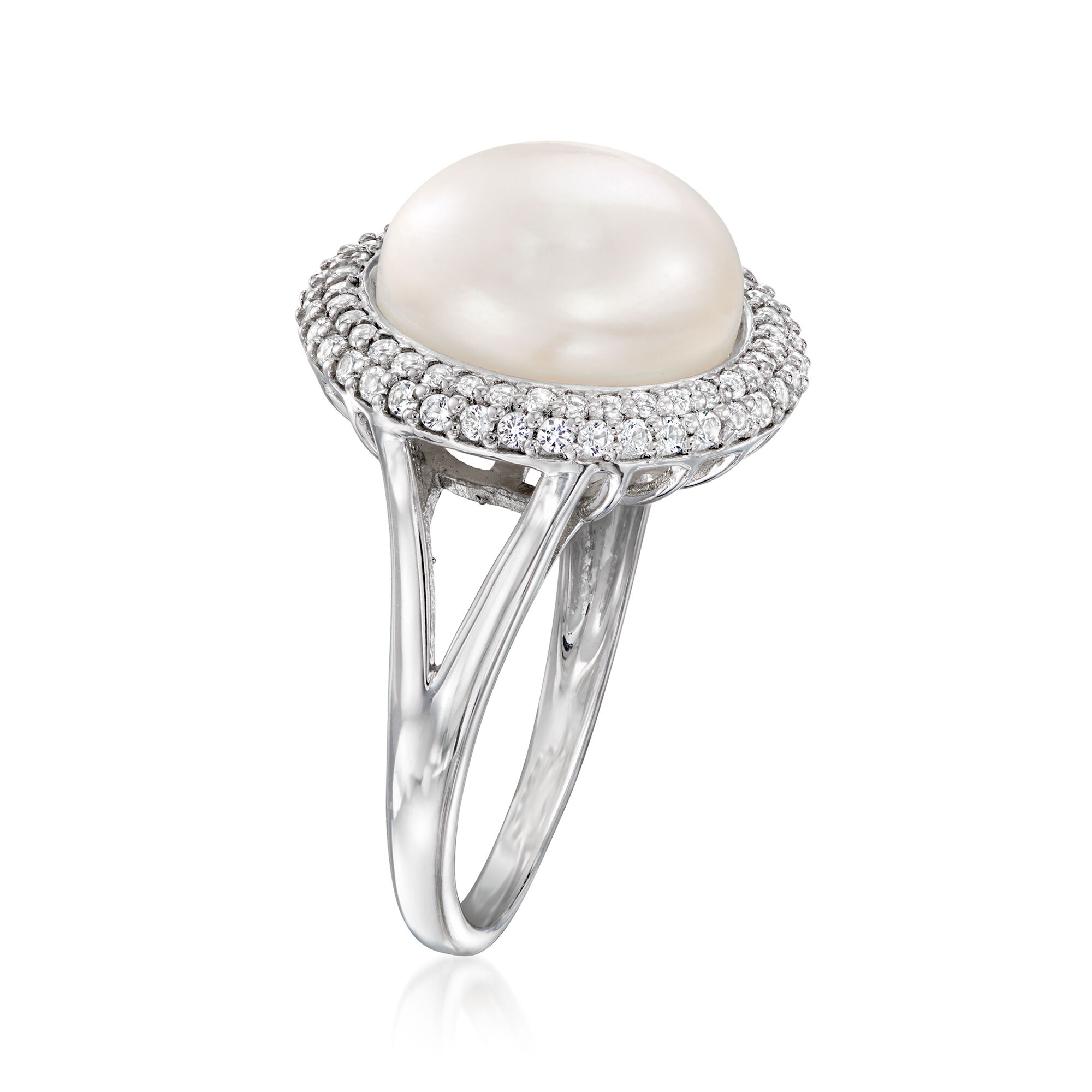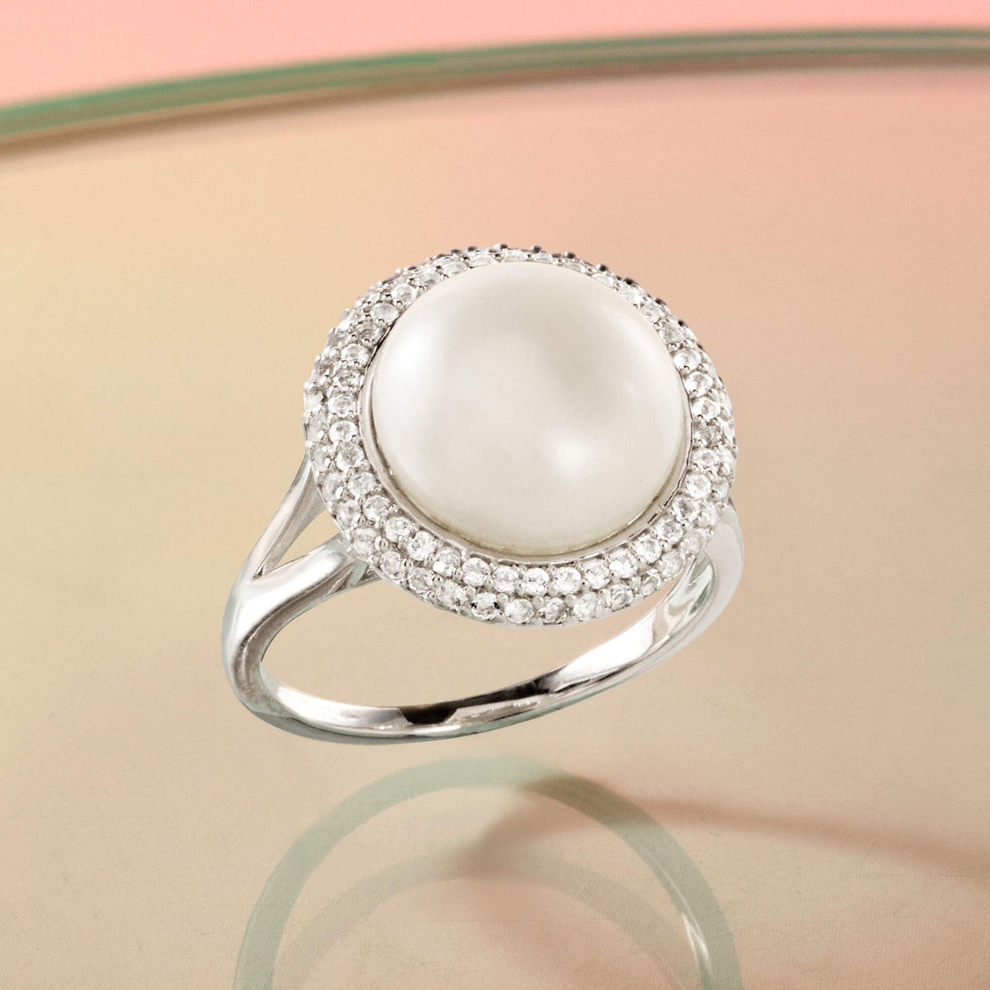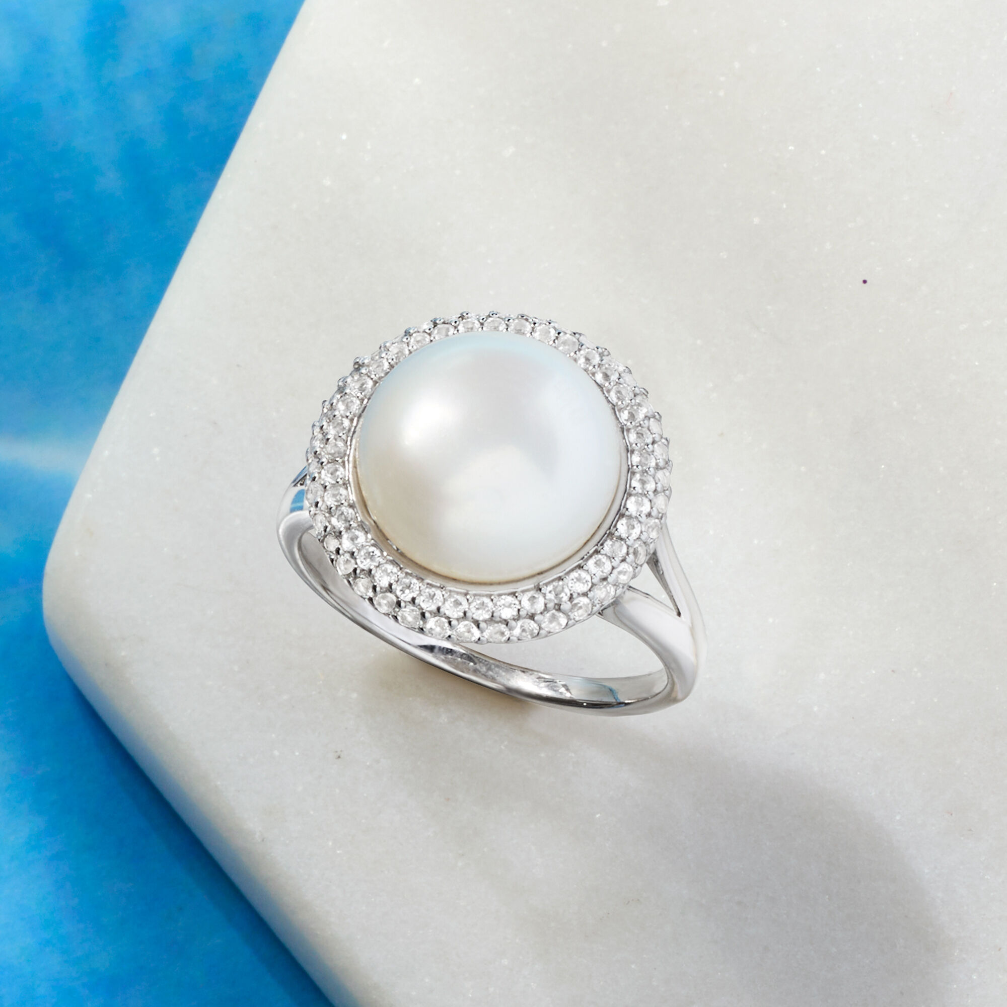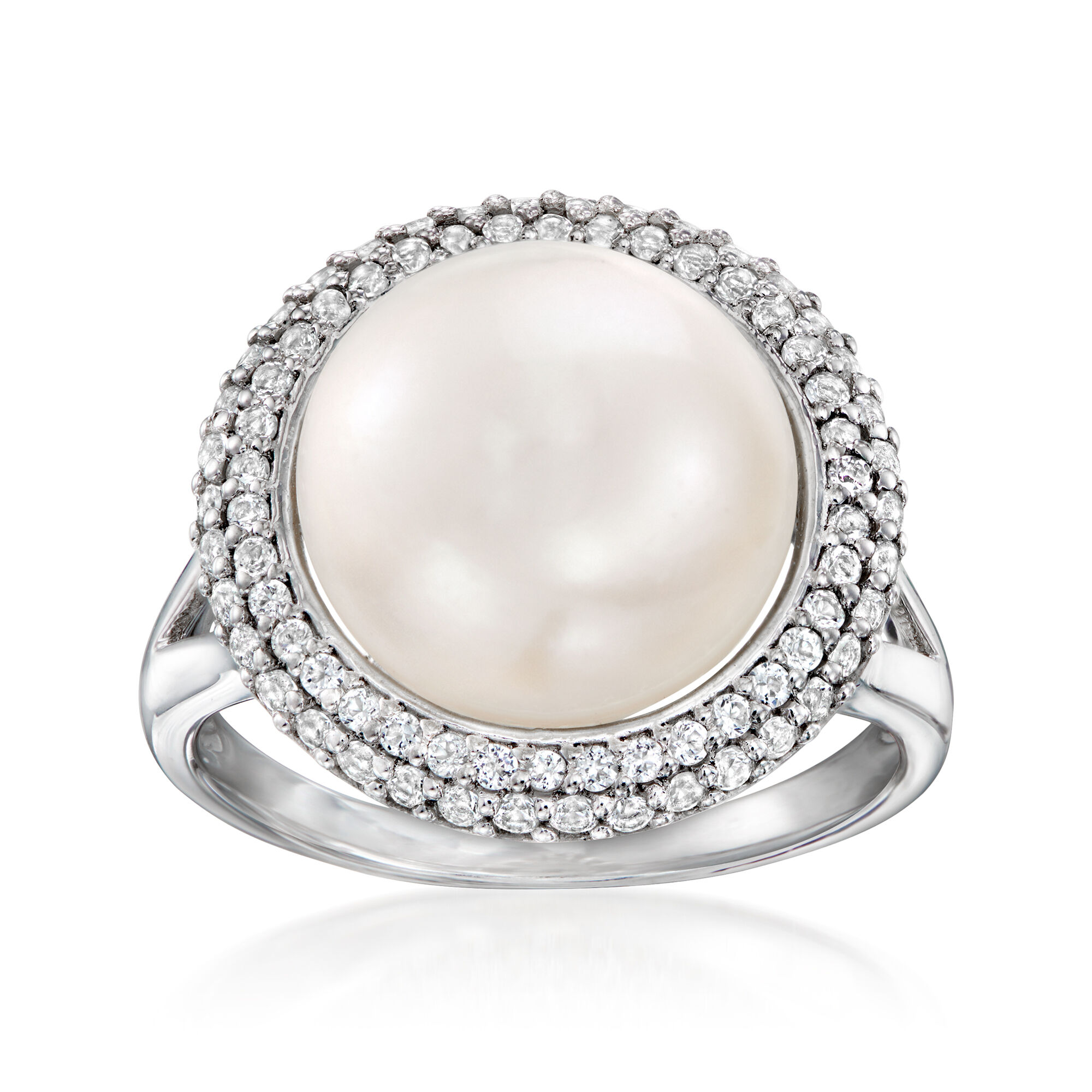 12-12.5mm Cultured Pearl and .90 ct. t.w. White Topaz Ring in Sterling Silver