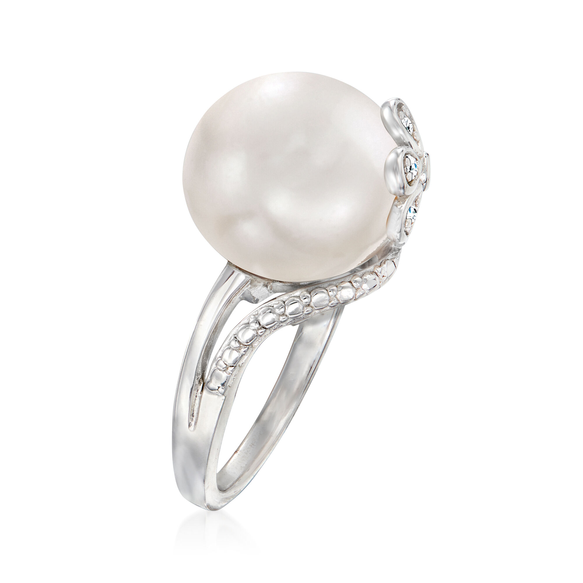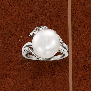 12-12.5mm Cultured Pearl Ring with Diamonds in Sterling Silver