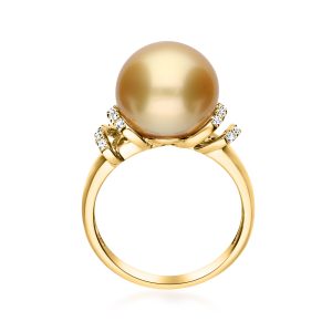 12-12.5mm Golden Cultured South Sea Pearl Ring with .14 ct. t.w. Diamonds in 14kt Yellow Gold