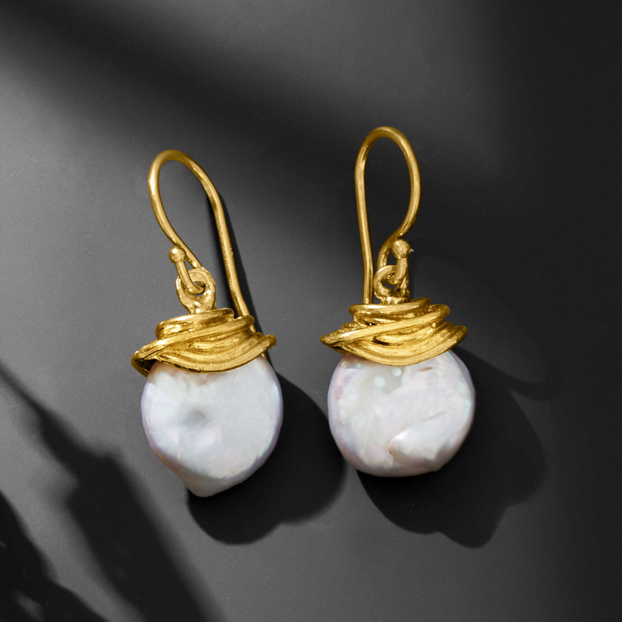 12-13mm Cultured Coin Pearl Drop Earrings in 18kt Gold Over Sterling