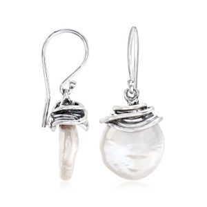 12-13mm Cultured Coin Pearl Drop Earrings in Sterling Silver