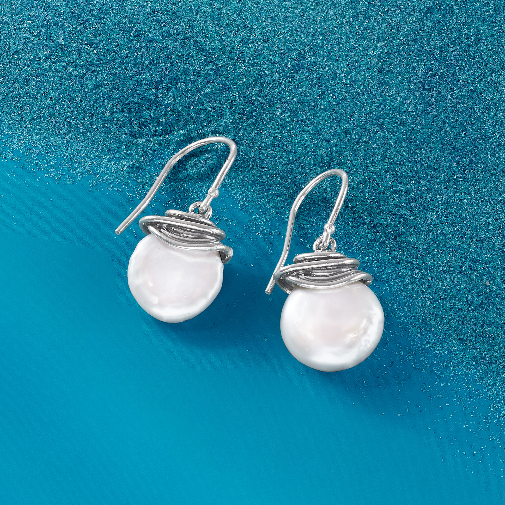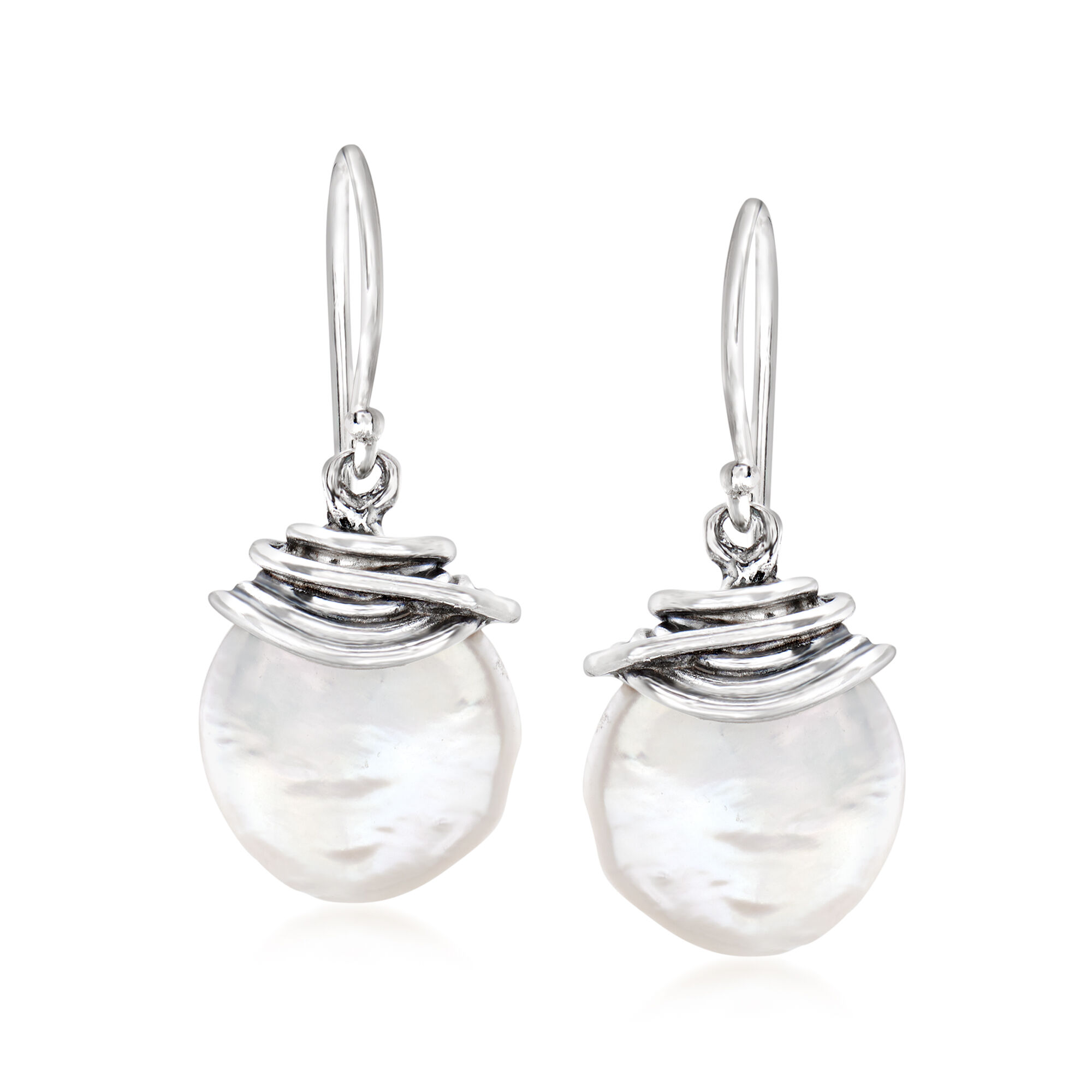 12-13mm Cultured Coin Pearl Drop Earrings in Sterling Silver