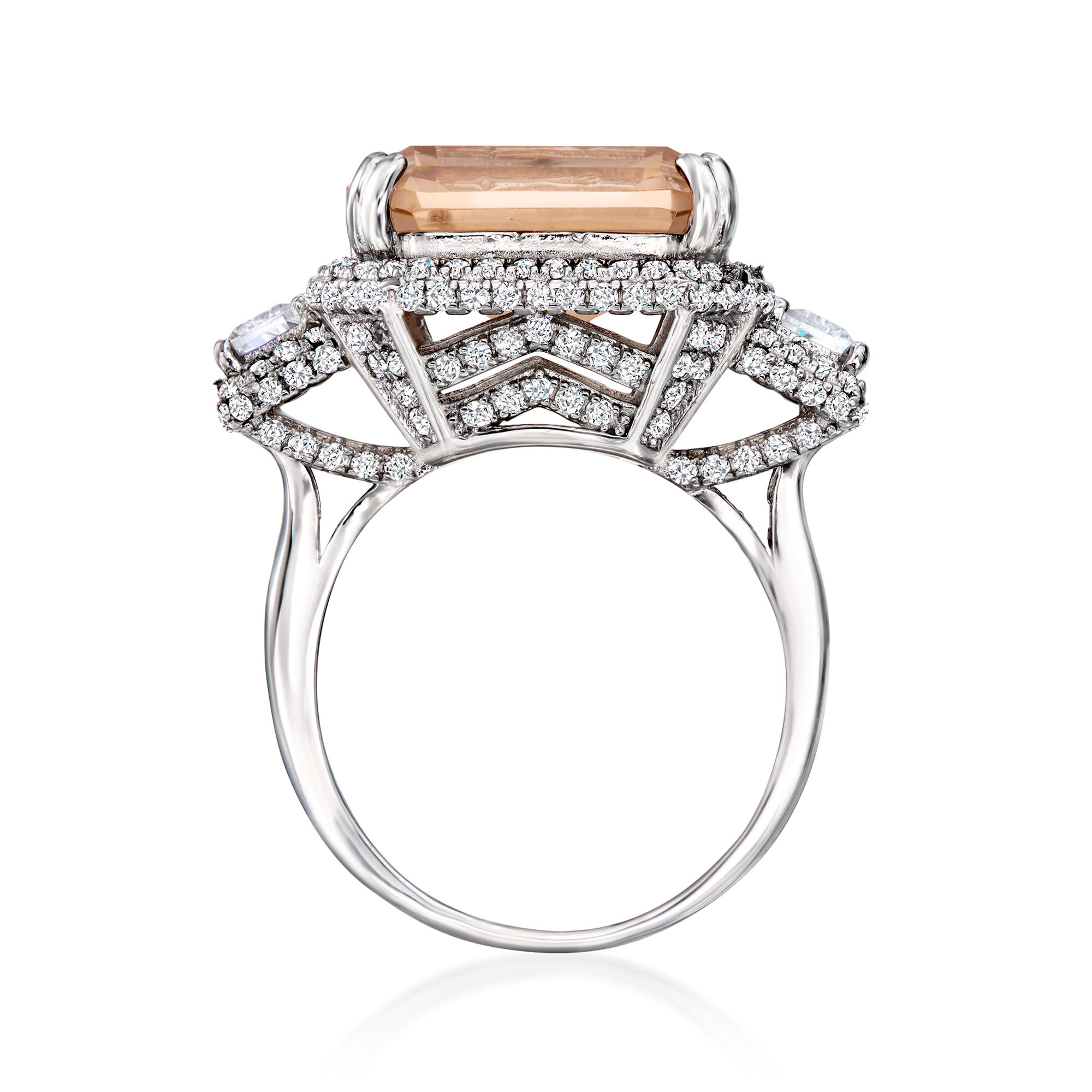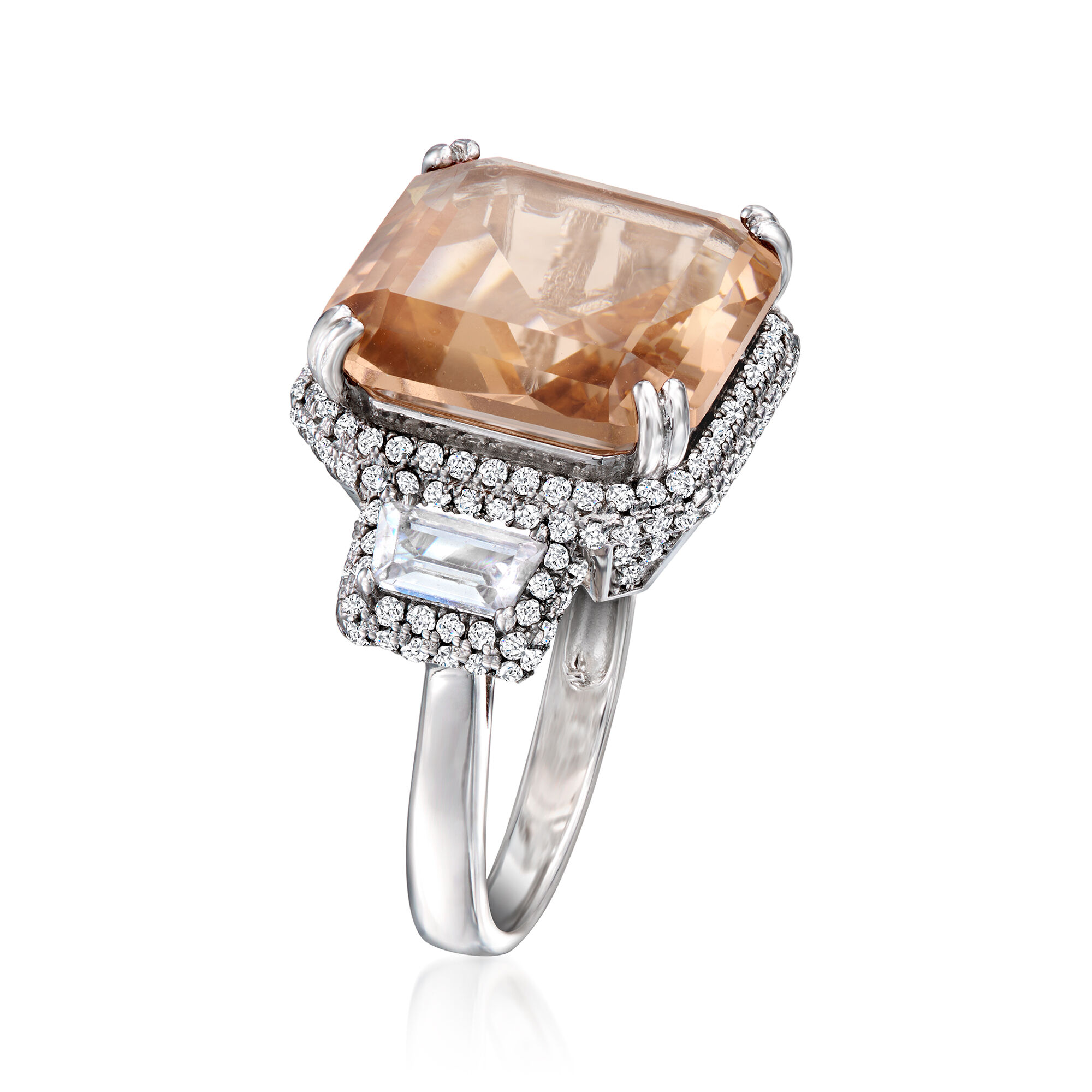 13.00 Carat Simulated Morganite and 1.60 ct. t.w. CZ Ring in Sterling Silver