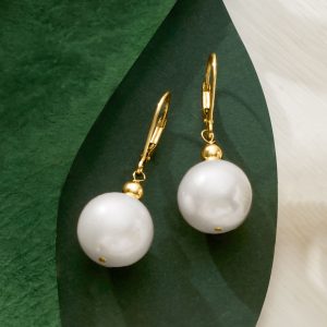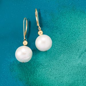 13-14mm Cultured Pearl Drop Earrings in 14kt Yellow Gold