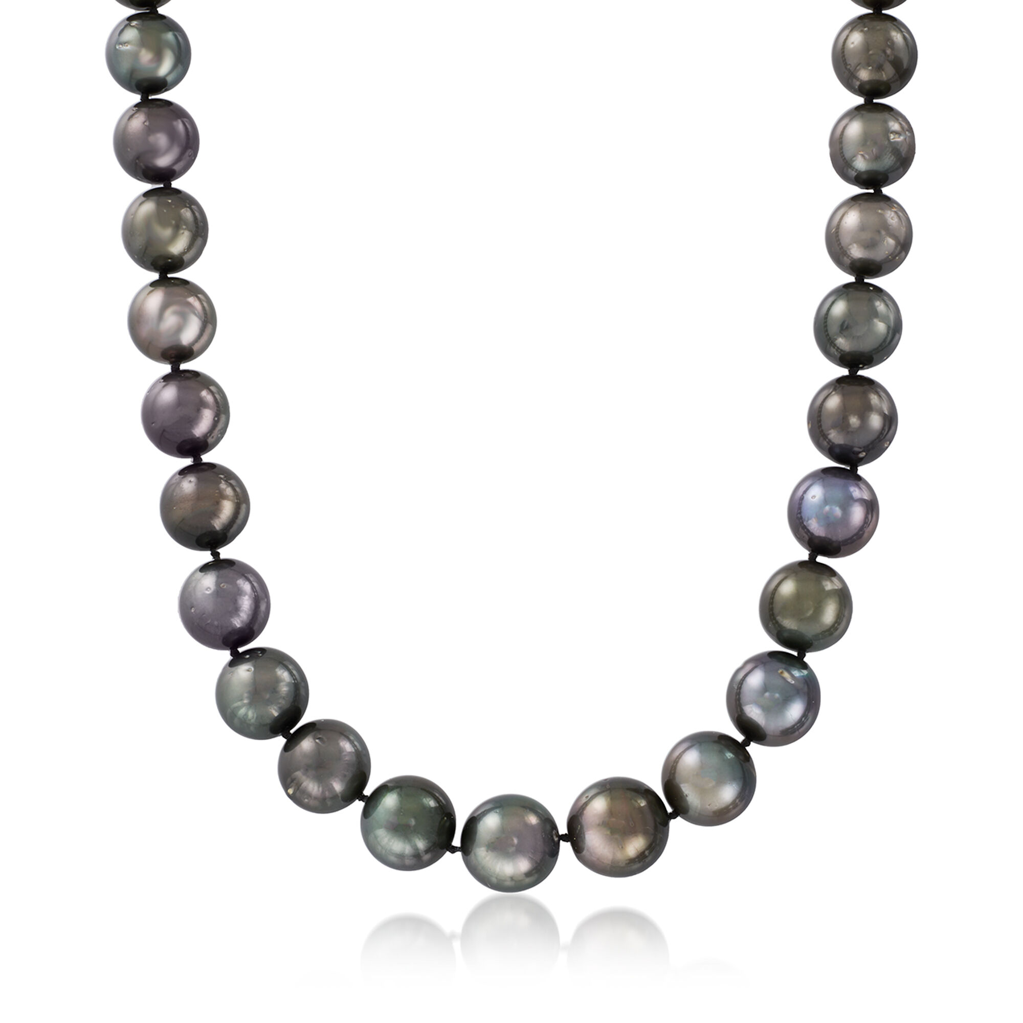 13-15mm Black Cultured Tahitian Pearl Strand Necklace with 14kt White Gold. 19″
