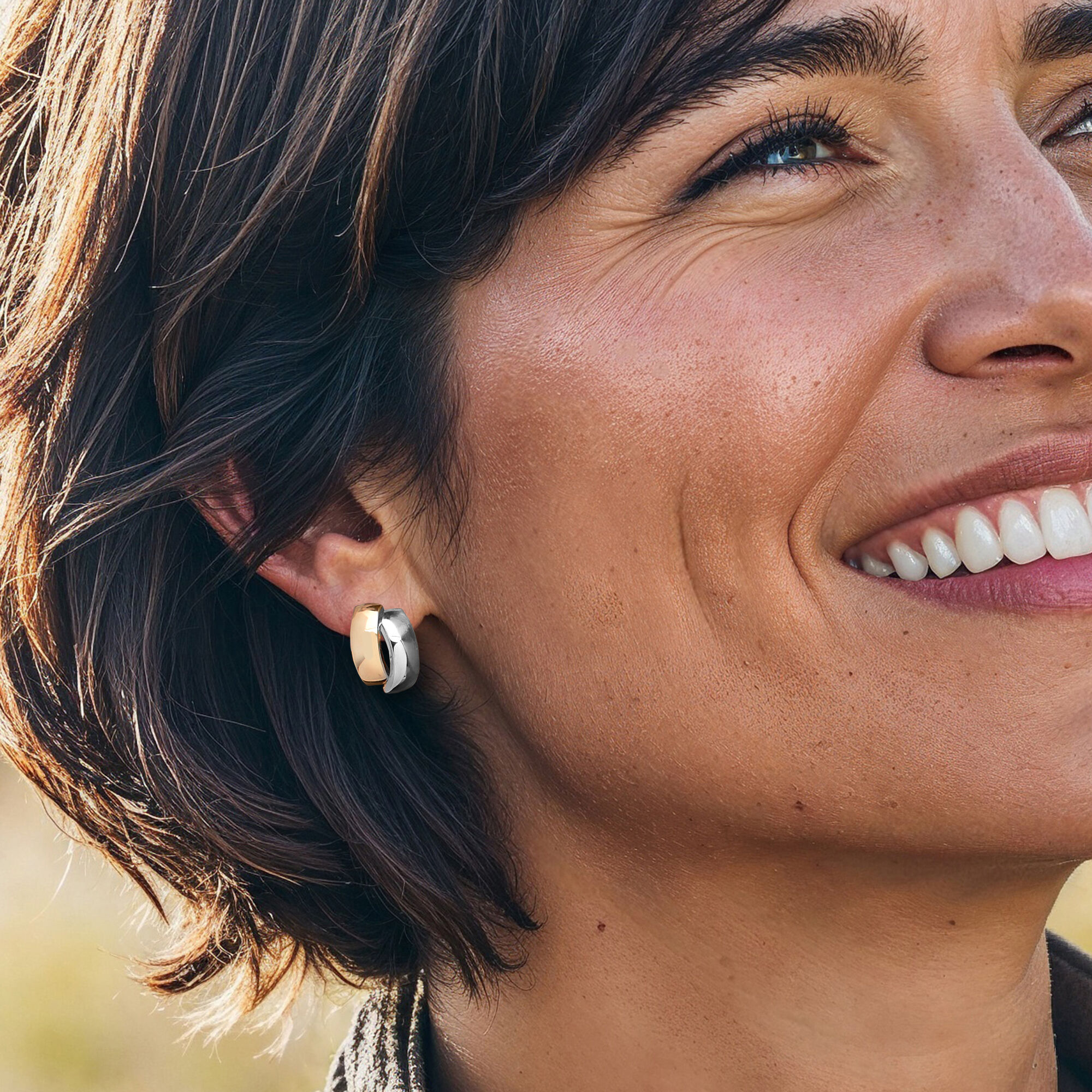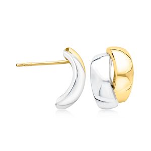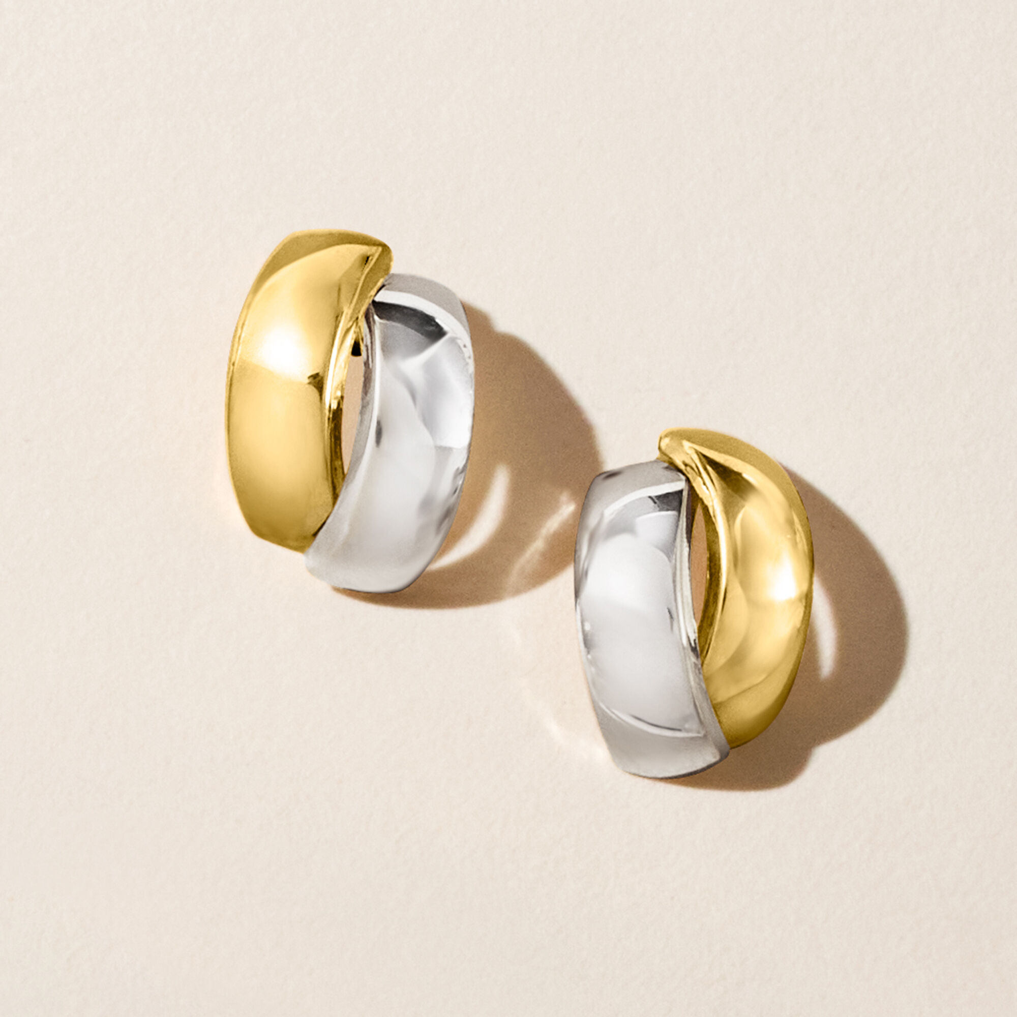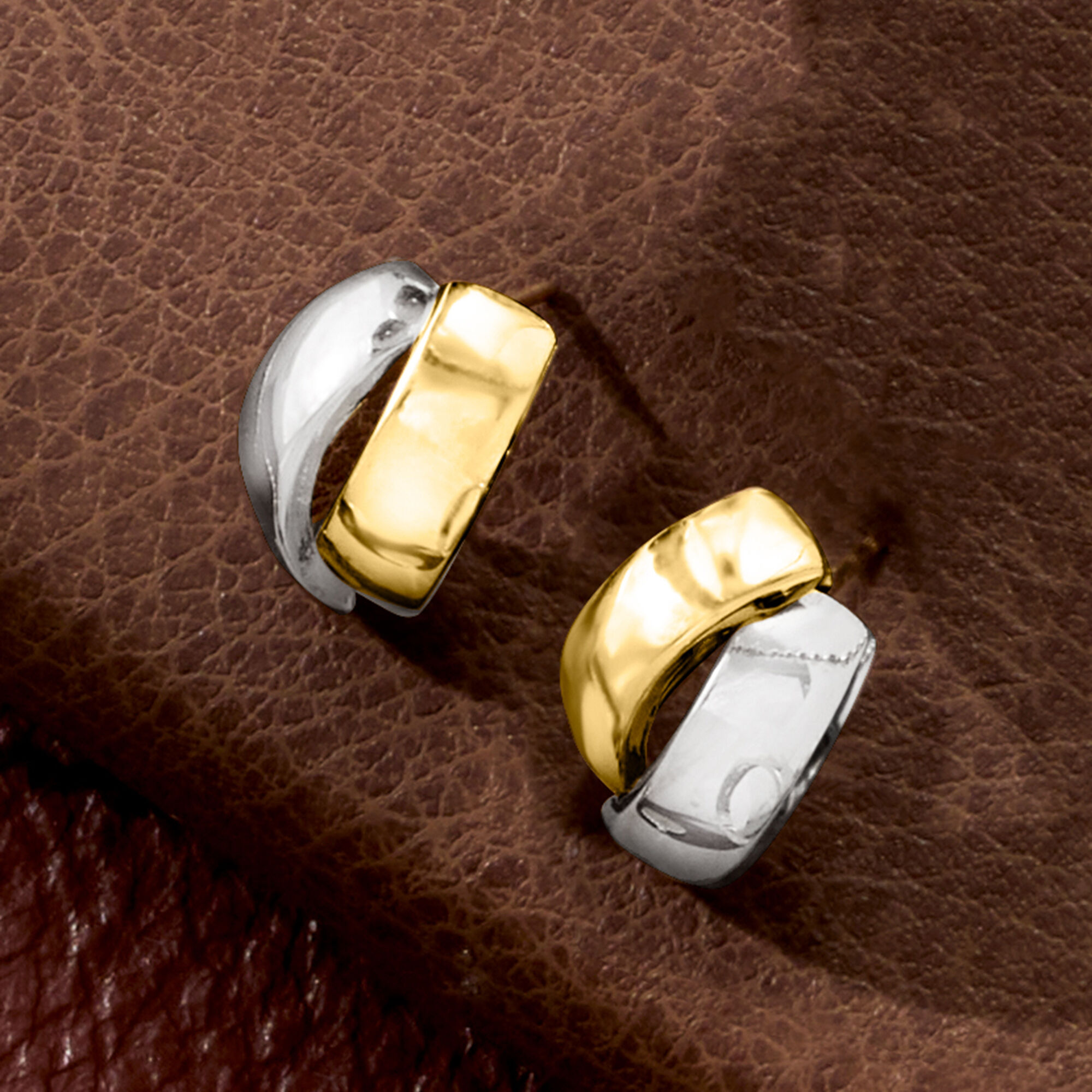 Italian Two-Tone Sterling Silver Curved Double-Hoop Earrings. 1 1/4″