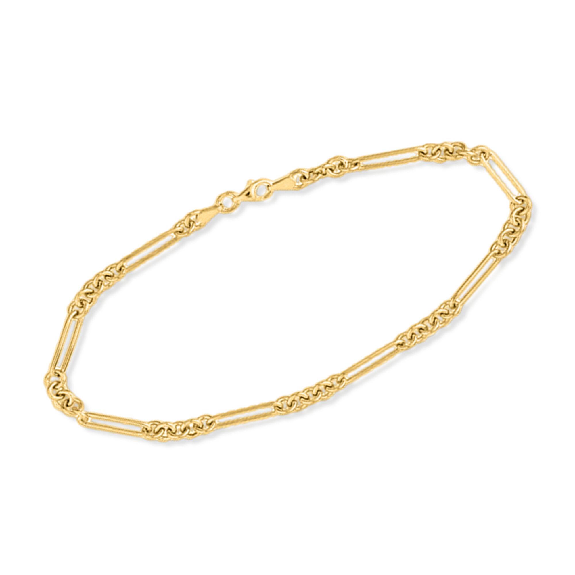 14kt Yellow Gold Cable and Paper Clip Link Anklet. 10″