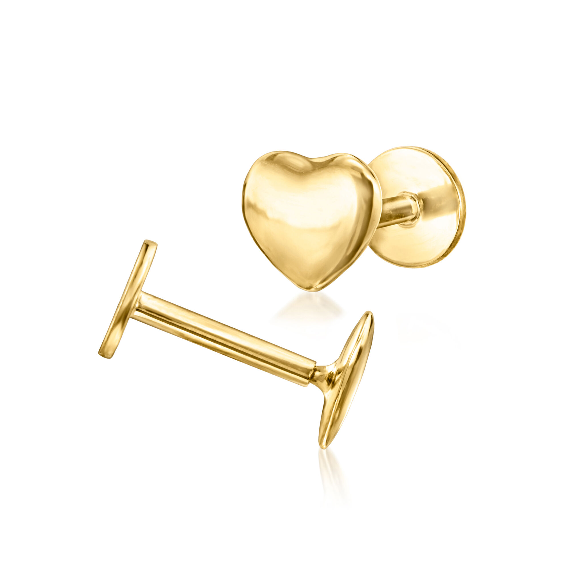 14kt Yellow Gold Heart Flat-Back Stud Earrings