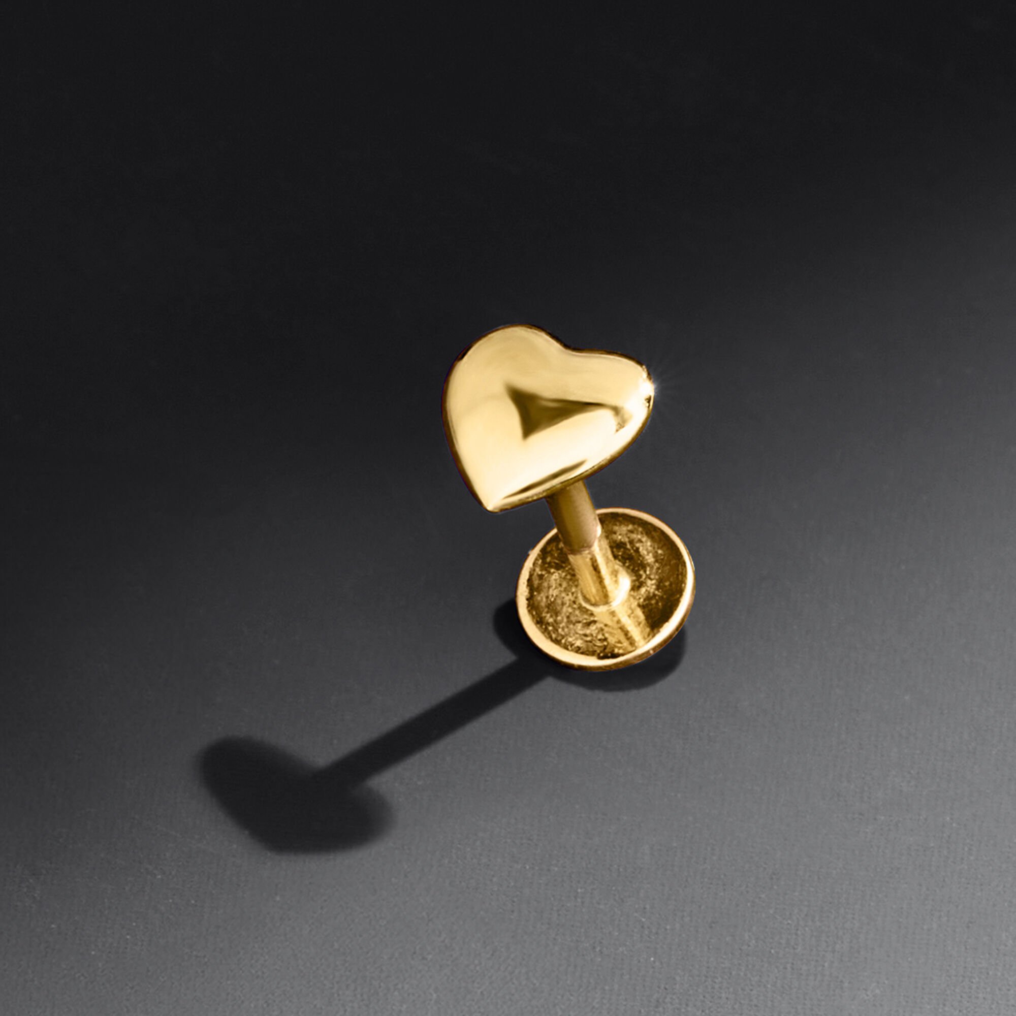14kt Yellow Gold Heart Single Flat-Back Stud Earring