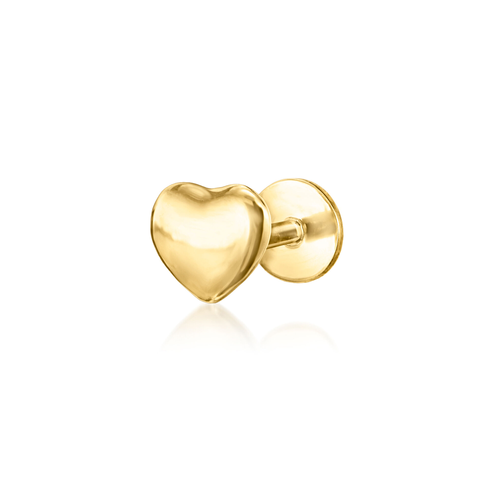 14kt Yellow Gold Heart Single Flat-Back Stud Earring