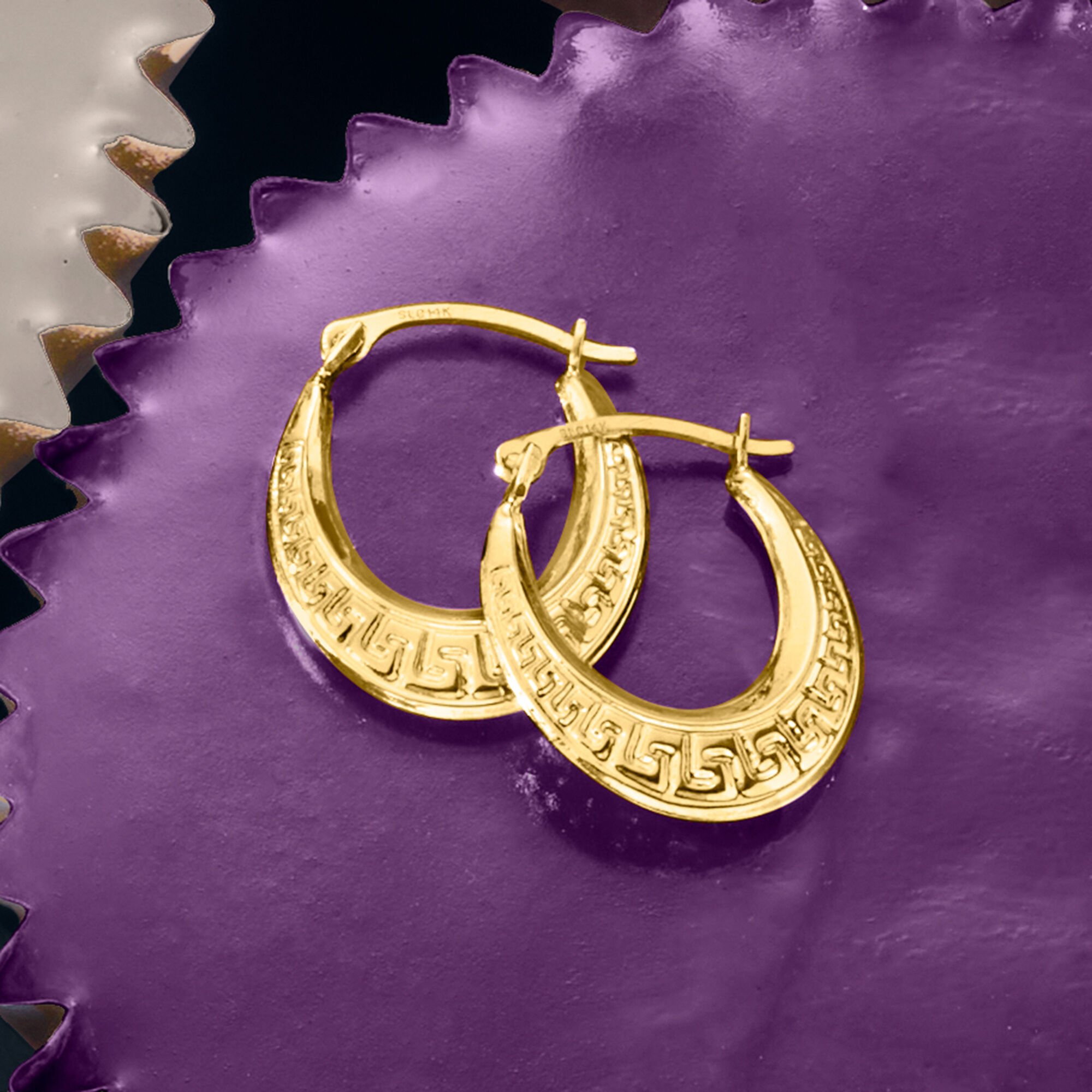 14kt Yellow Gold Small Greek Key Hoop Earrings. 5/8″