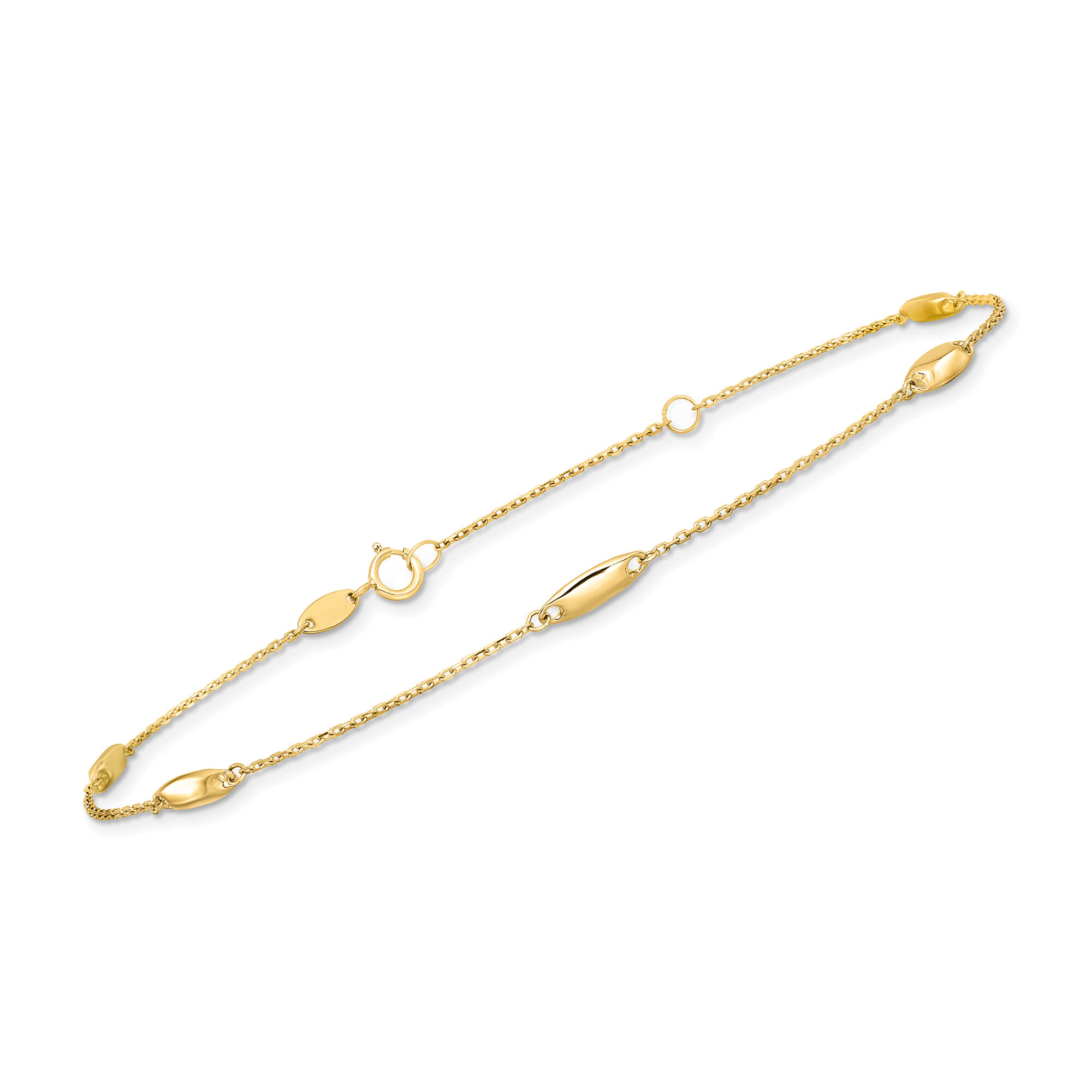 14kt Yellow Gold Station Anklet. 9″