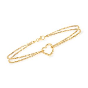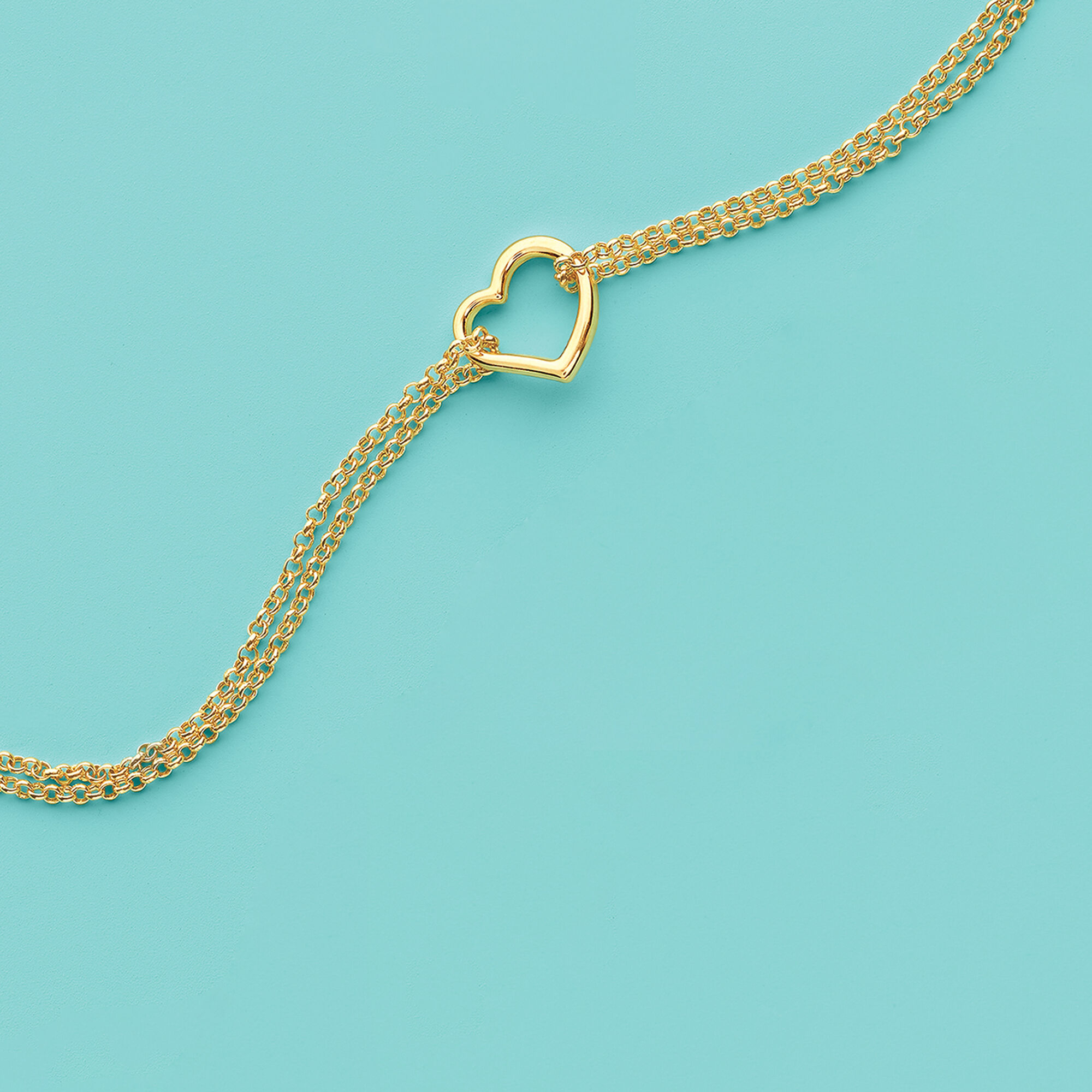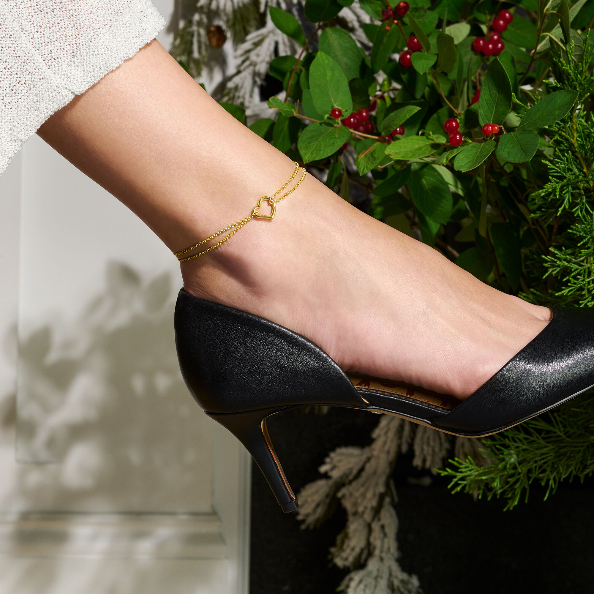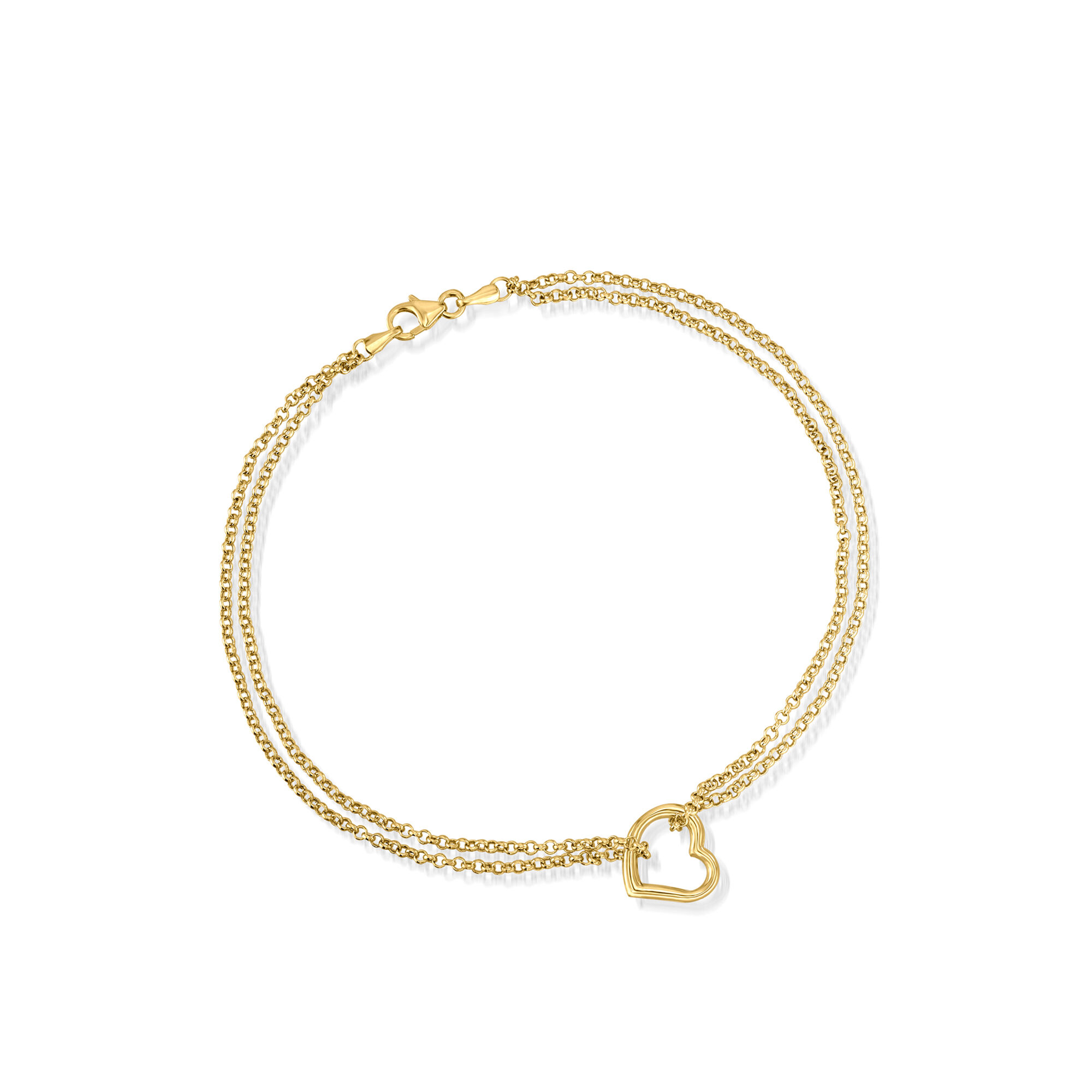 14kt Yellow Gold Two-Strand Heart Anklet. 10″