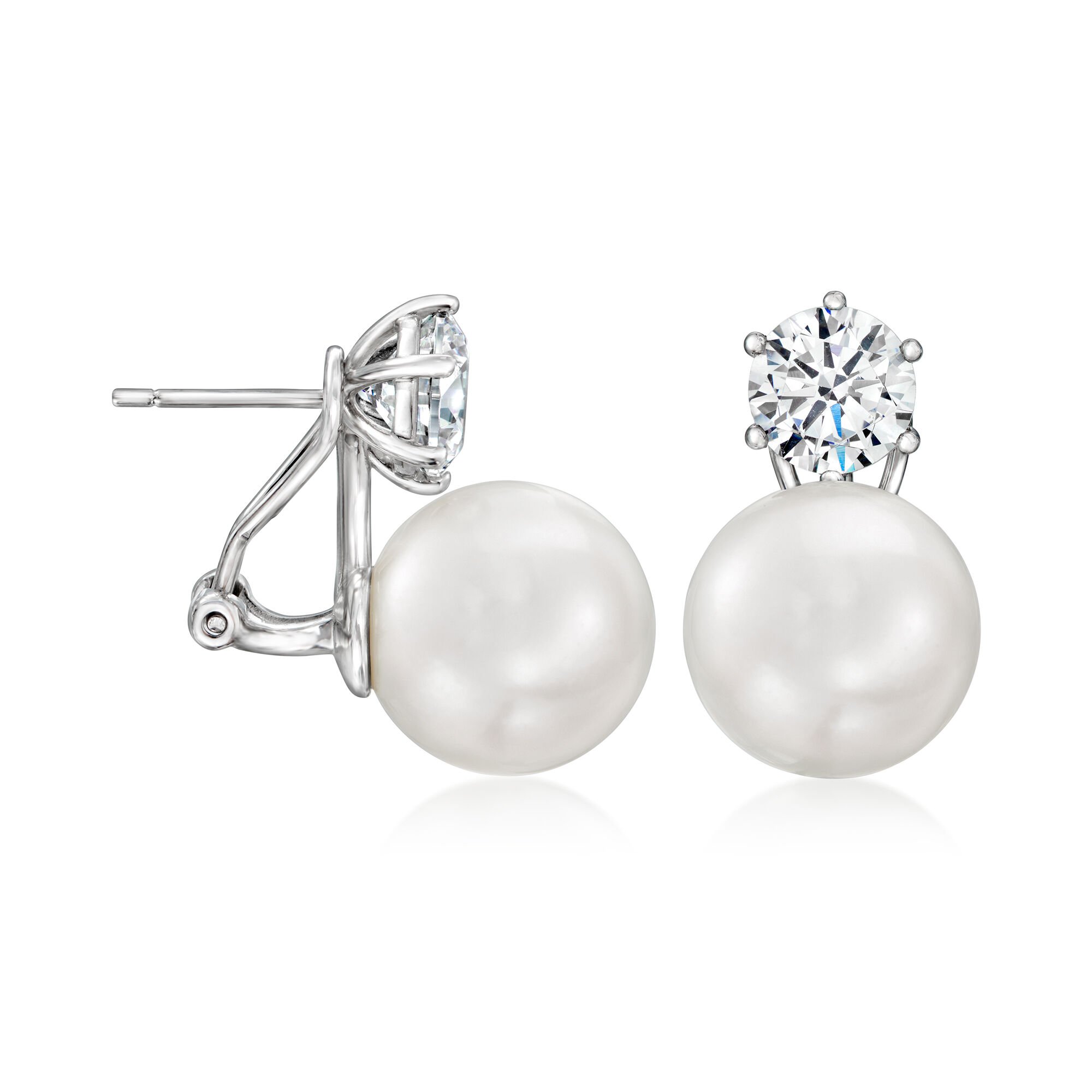 14mm Shell Pearl and 3.80 ct. t.w. CZ Earrings in Sterling Silver