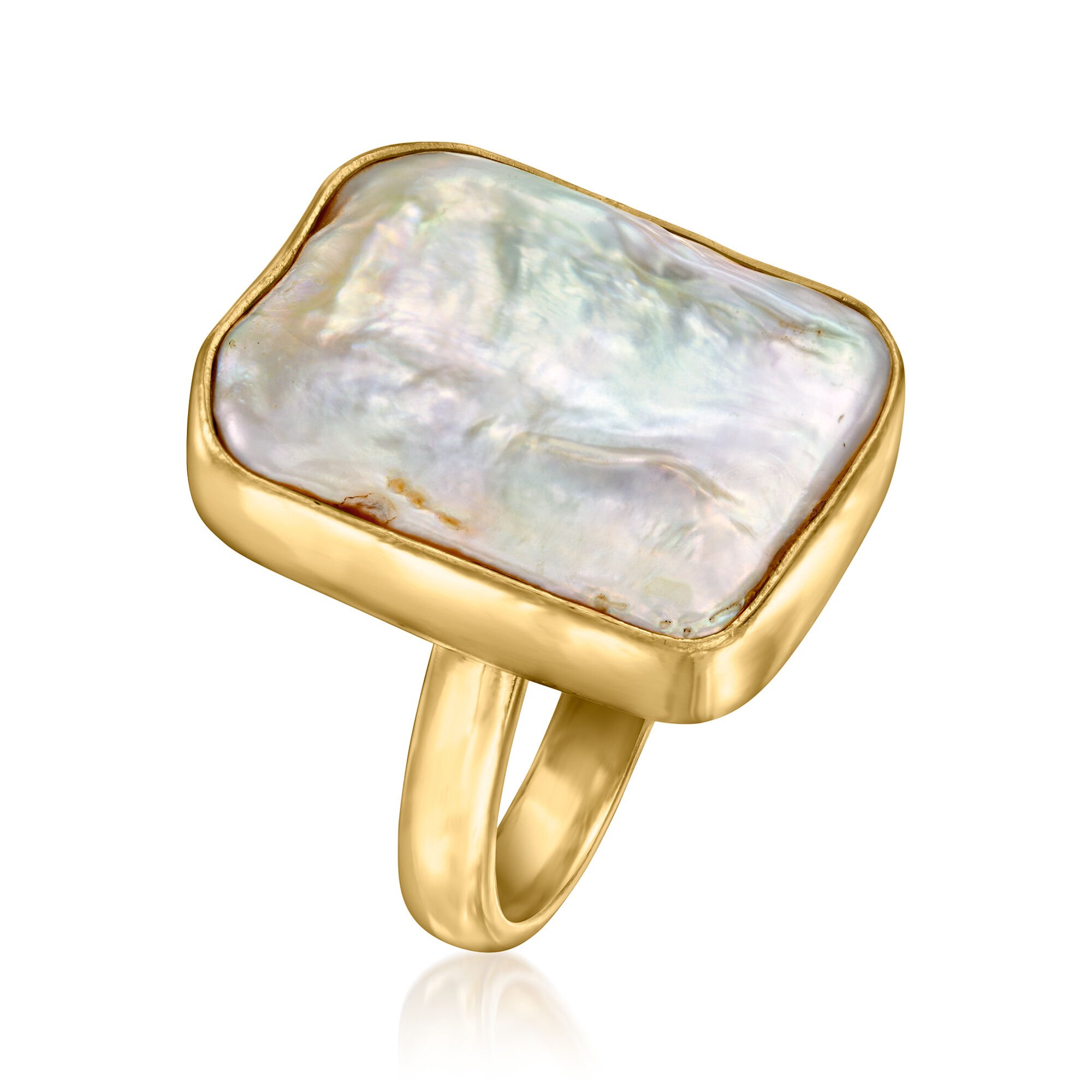 14x18mm Cultured Pearl Ring in 18kt Gold Over Sterling