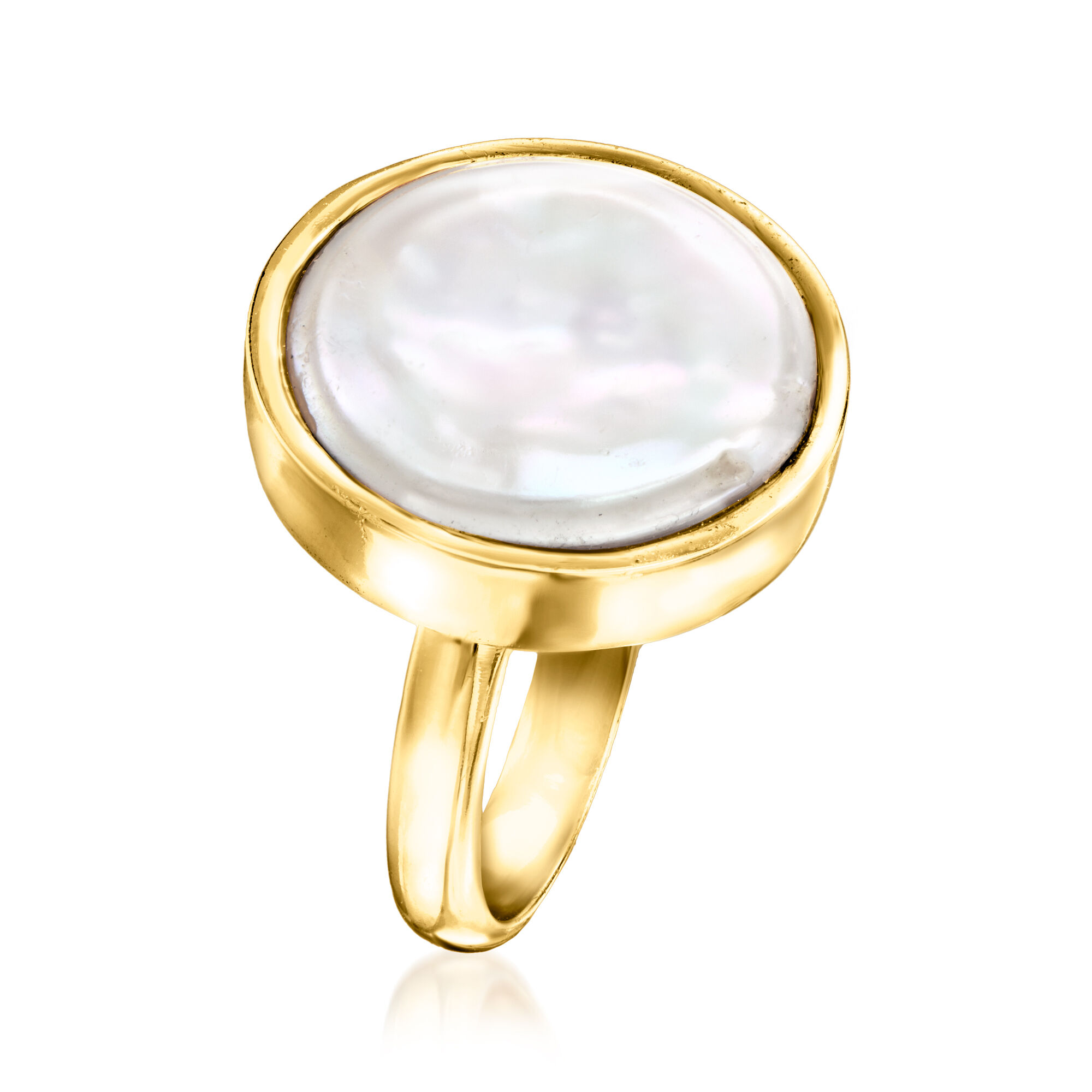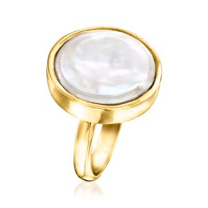 15-15.5mm Cultured Coin Pearl Ring in 18kt Gold Over Sterling