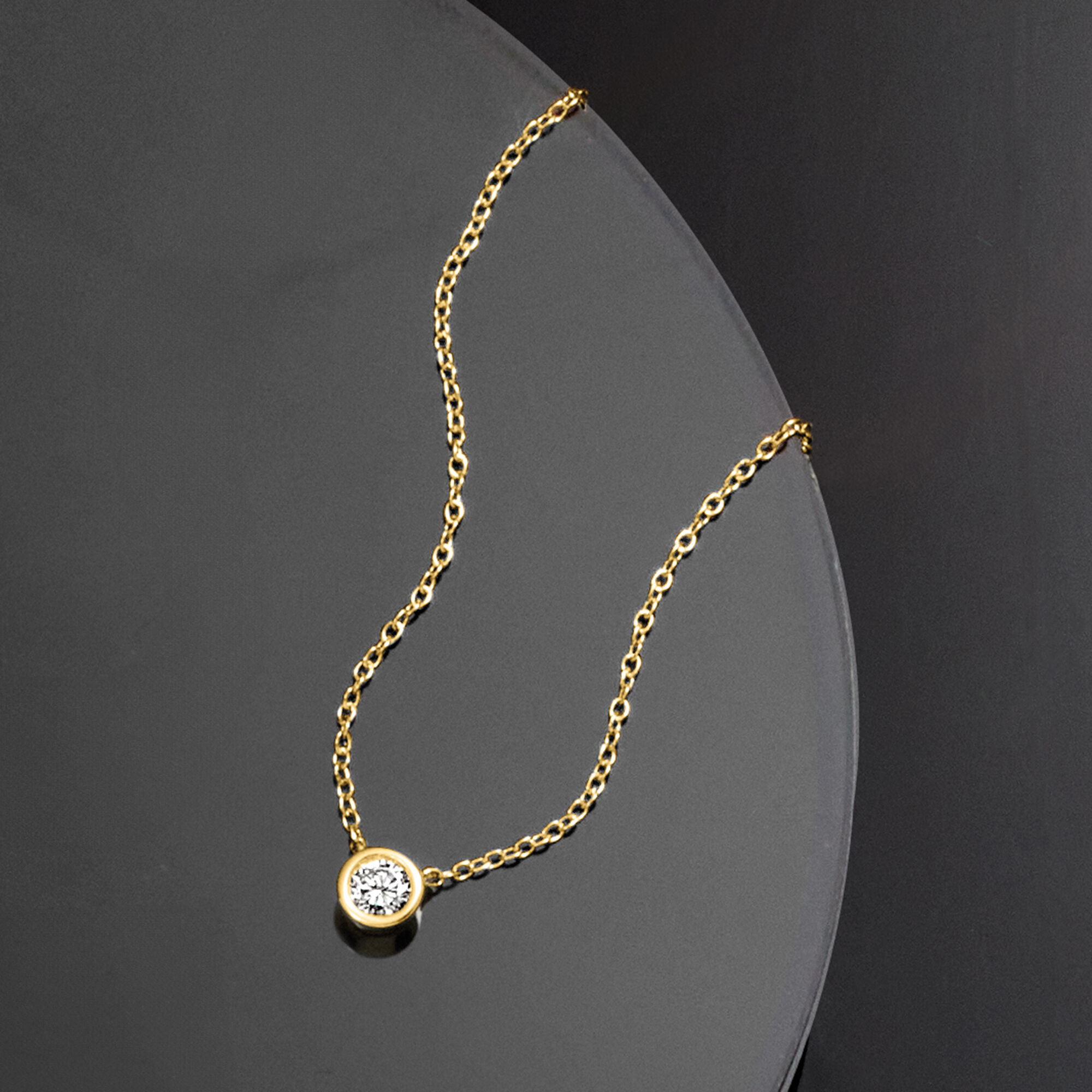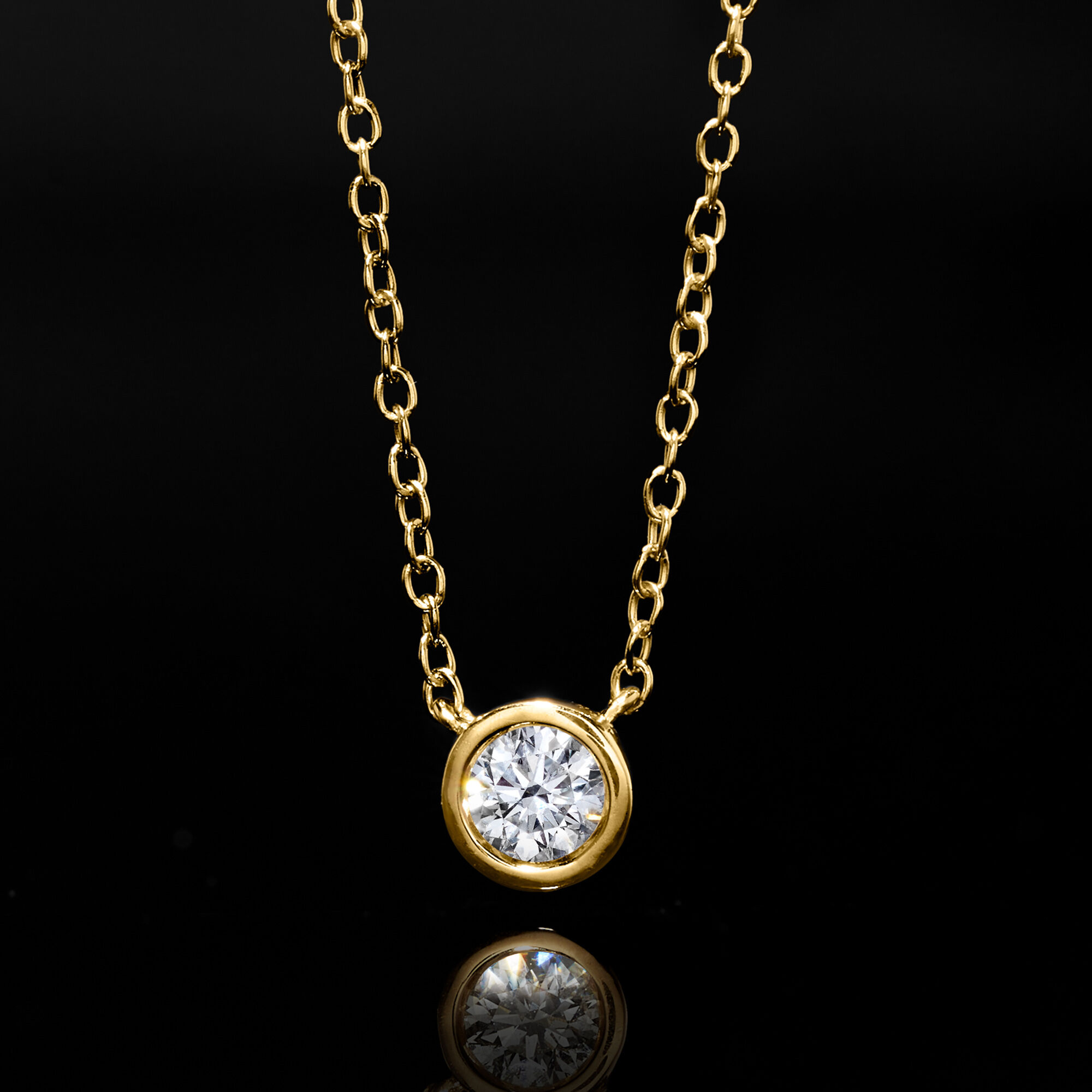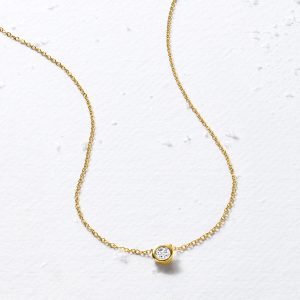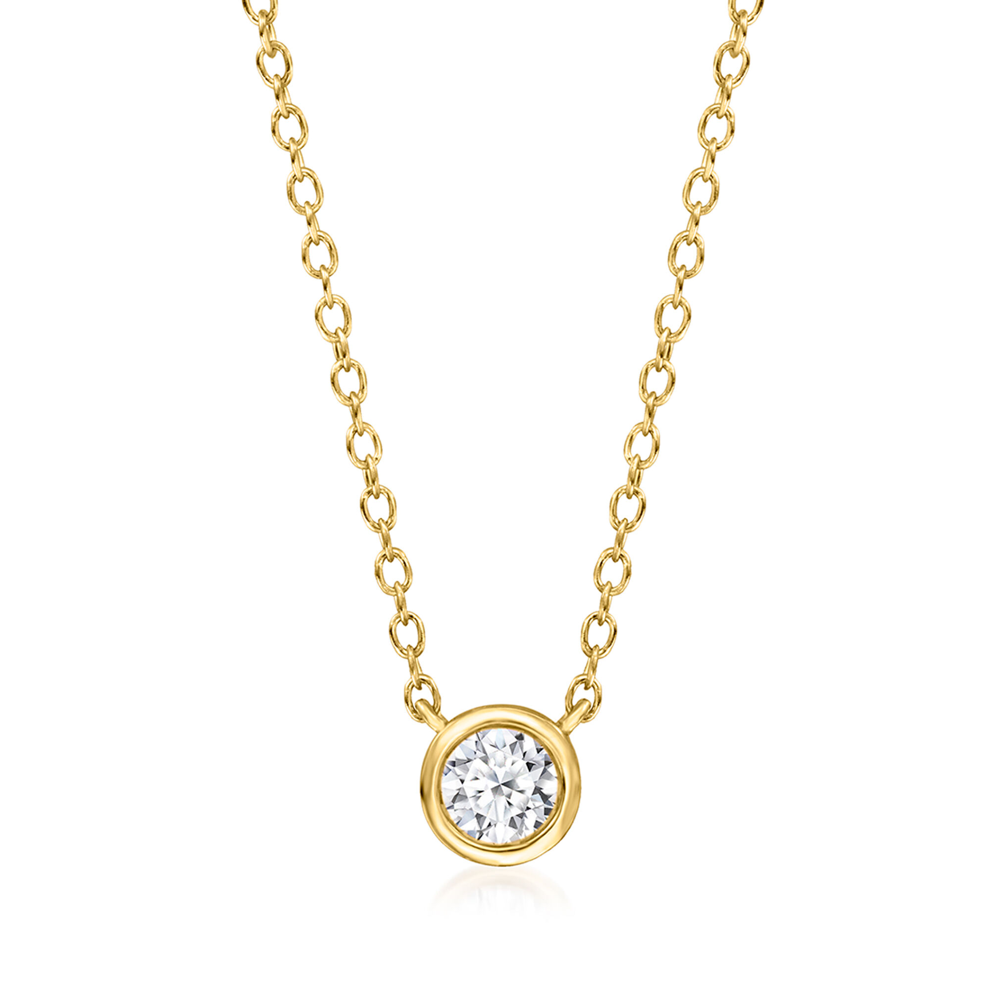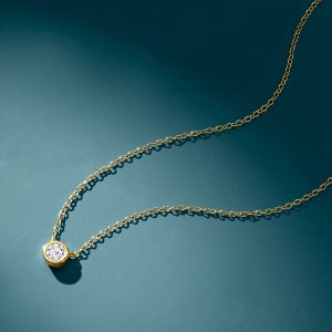 .25 Carat Bezel-Set Lab-Grown Diamond Solitaire Necklace in 14kt Yellow Gold. 16″