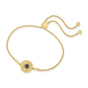 .15 ct. t.w. Black Diamond Sunflower Bolo Bracelet in 18kt Gold Over Sterling