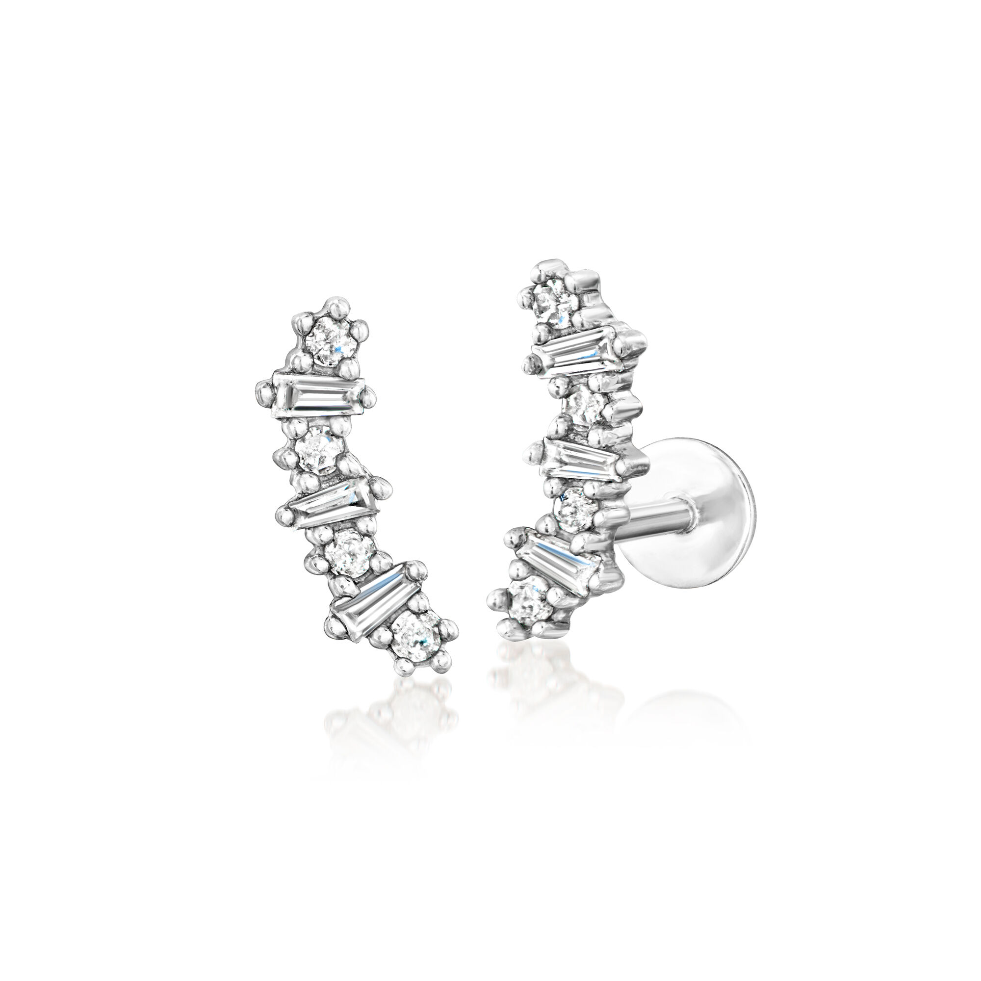 .15 ct. t.w. Diamond Flat-Back Ear Climbers in Sterling Silver