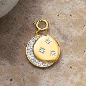 .15 ct. t.w. Diamond Moon and Stars Charm in 18kt Gold Over Sterling