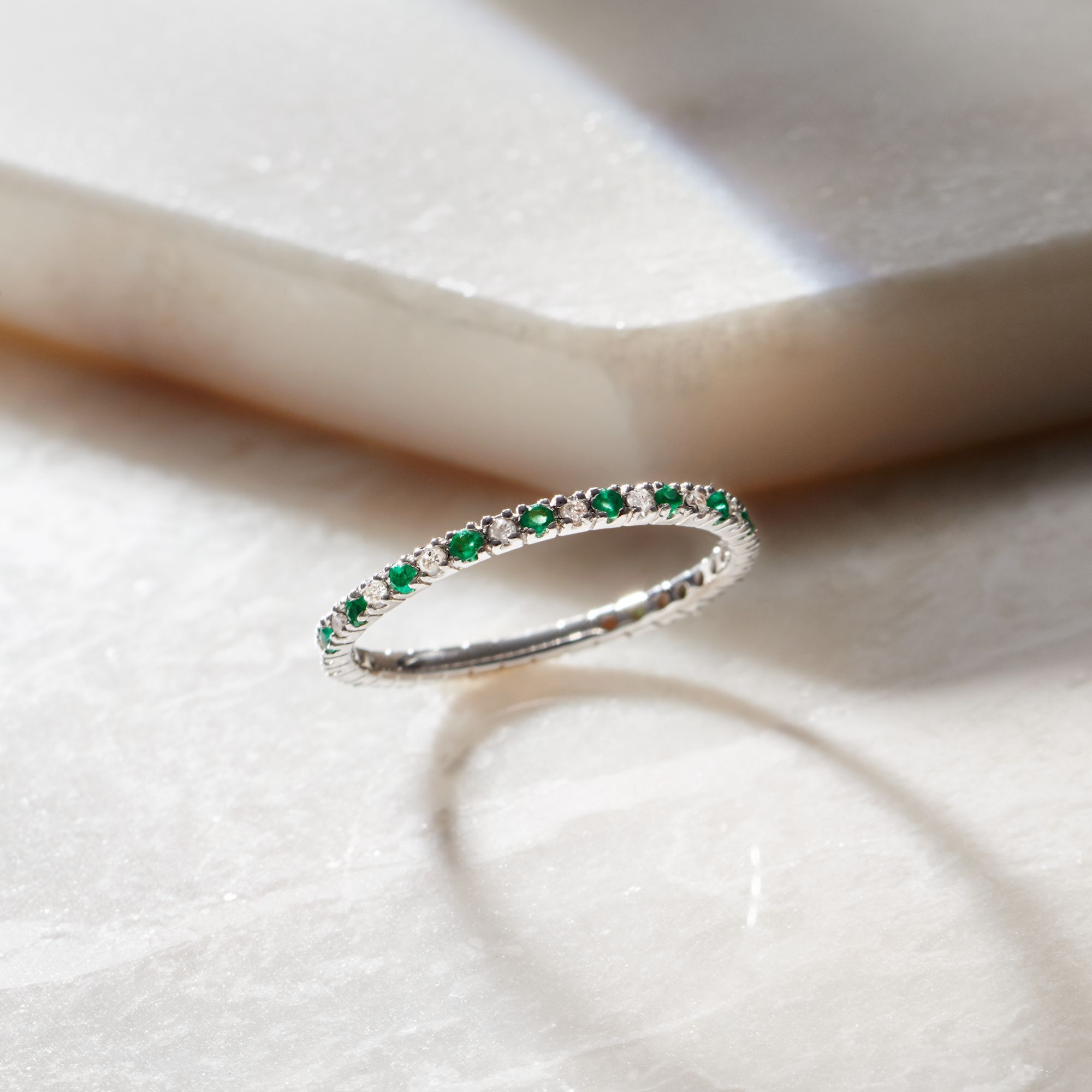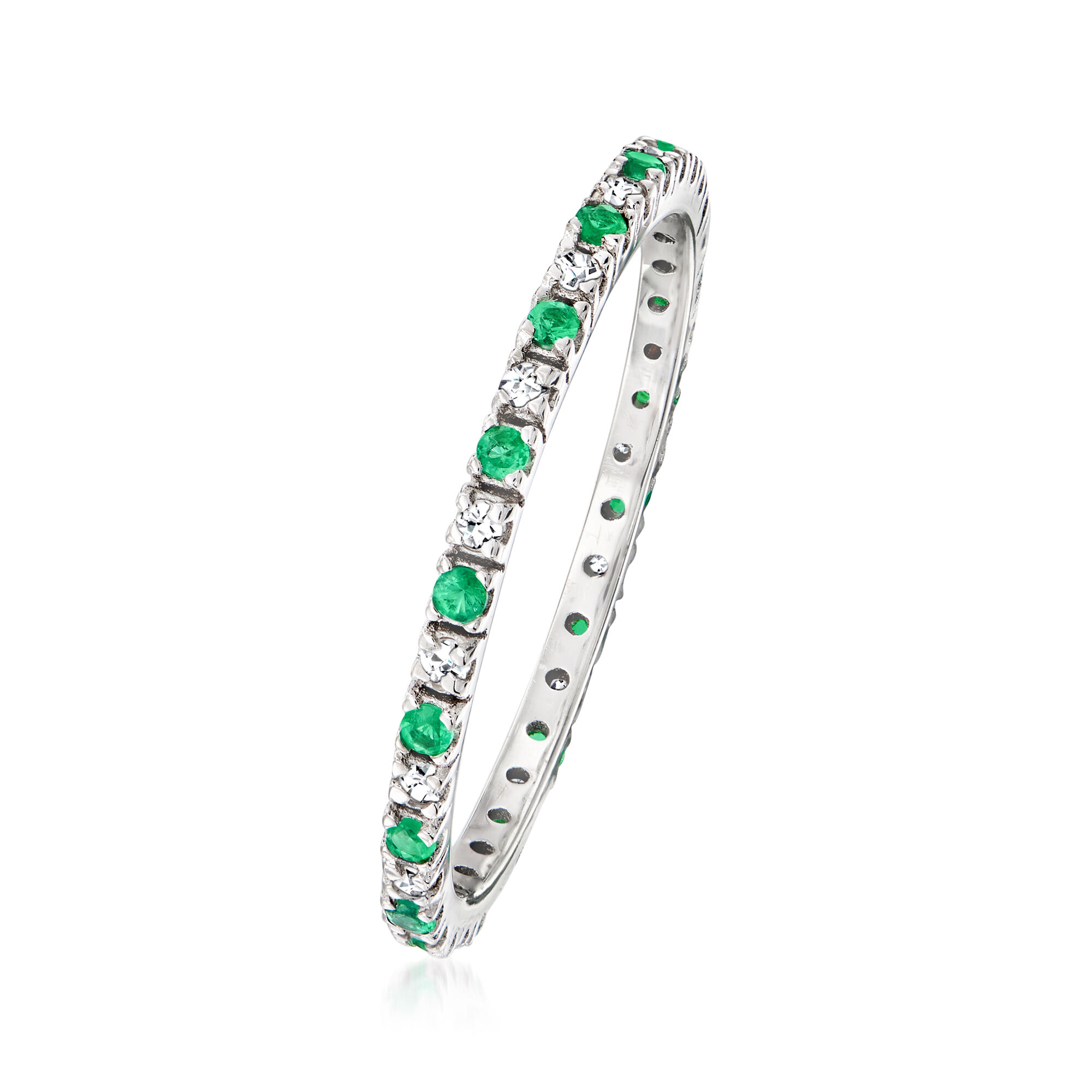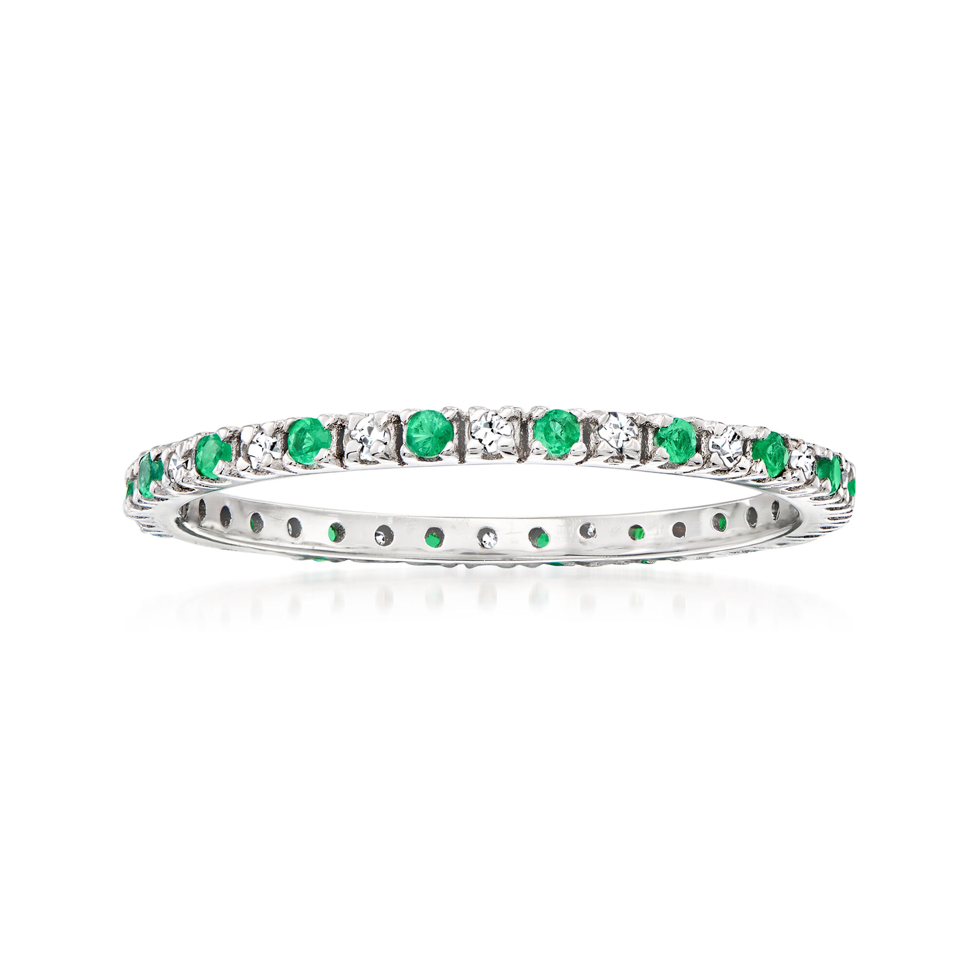 .15 ct. t.w. Emerald and .13 ct. t.w. Diamond Eternity Band in 14kt White Gold