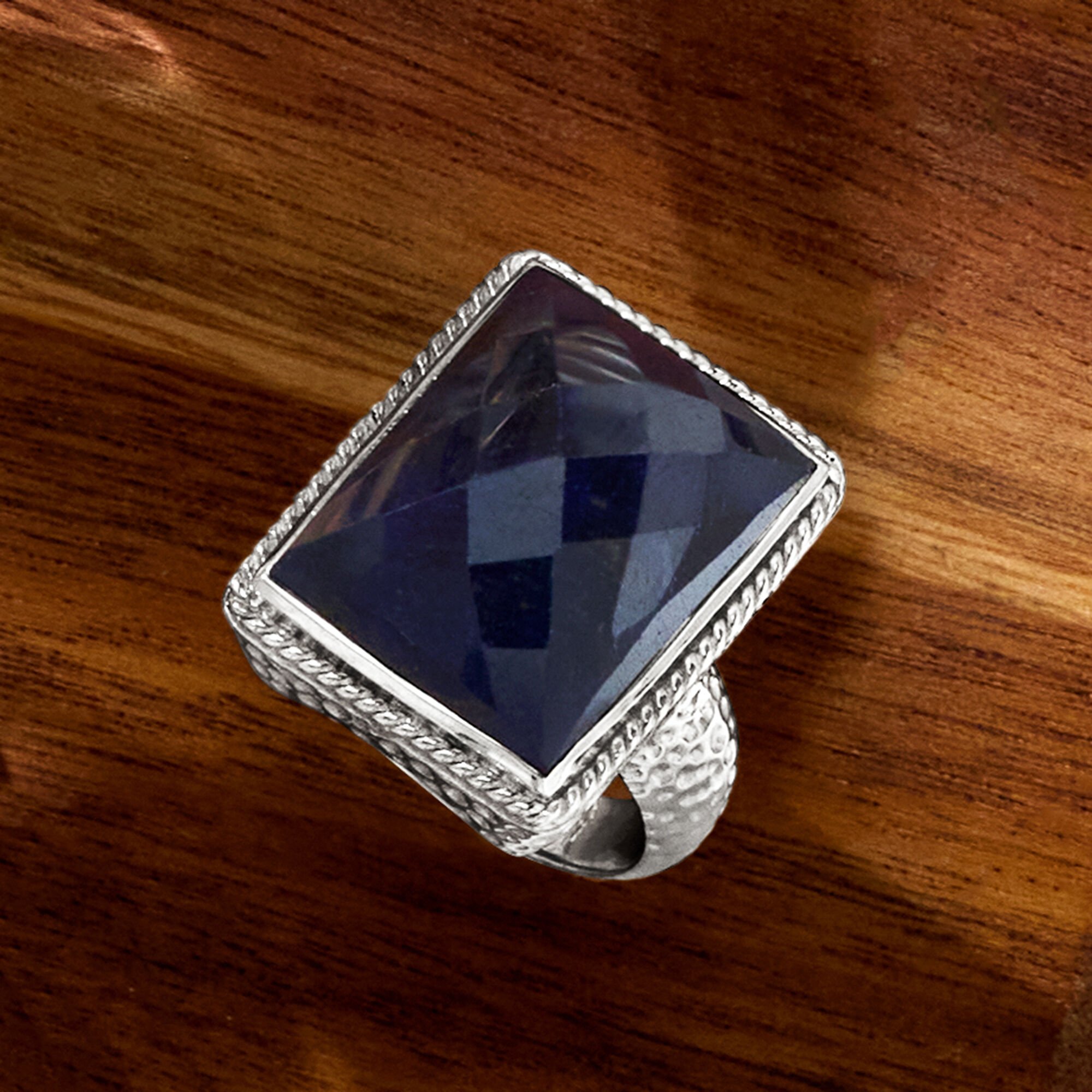17.00 Carat Sapphire Roped-Edge Ring in Sterling Silver