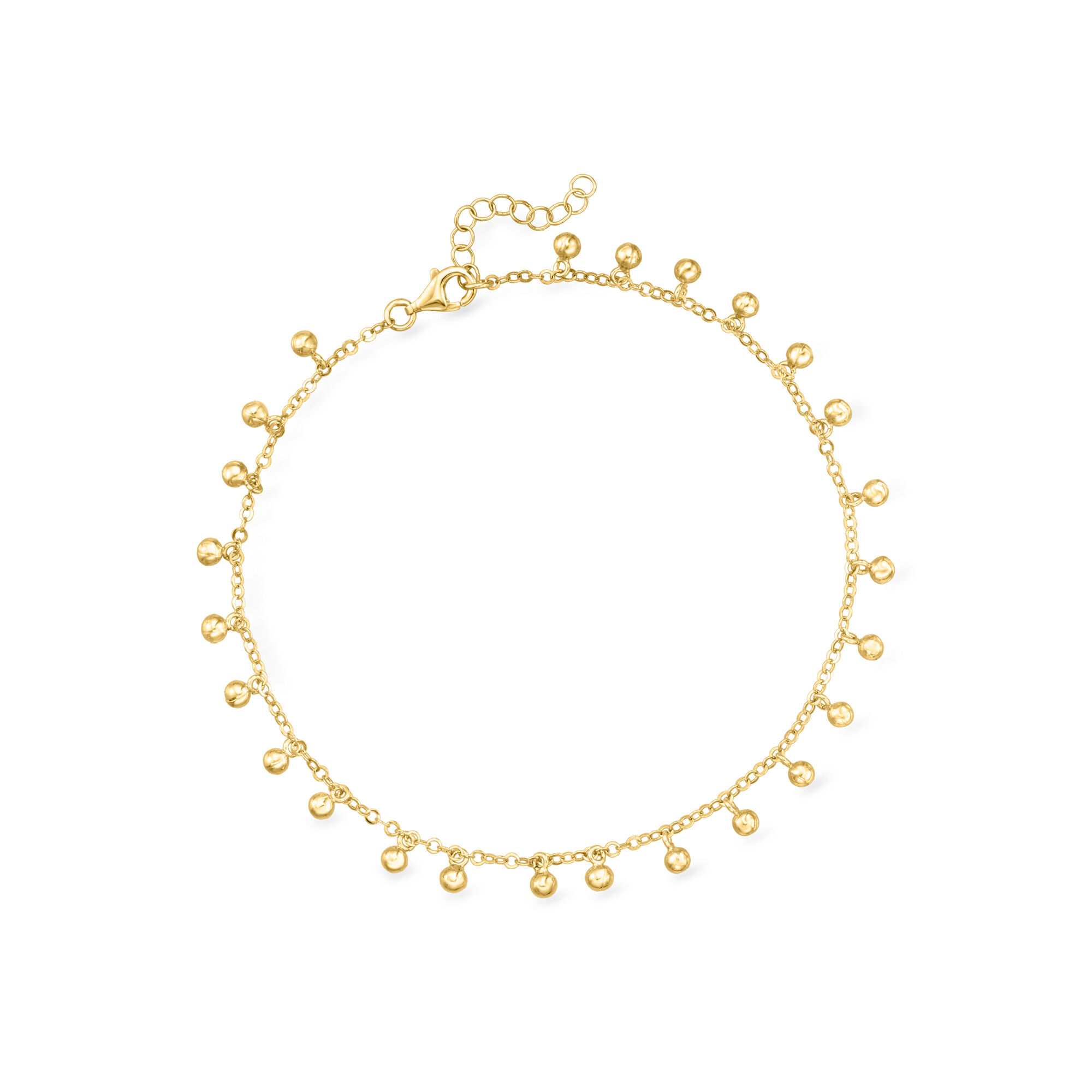 18kt Gold Over Sterling Ball Station Anklet. 9″