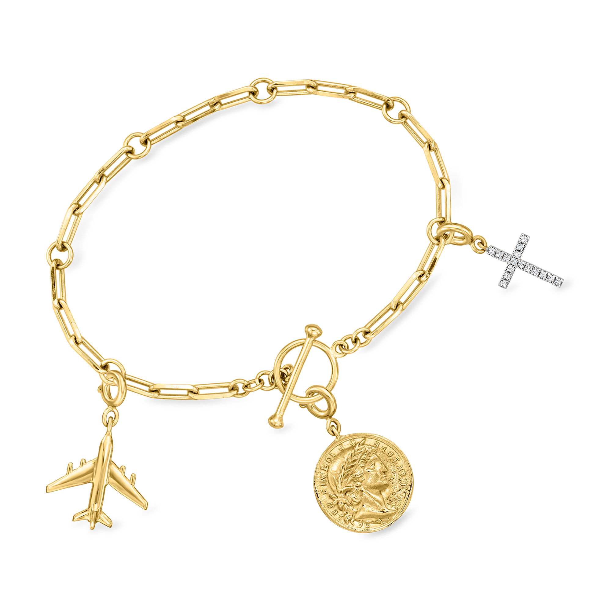 18kt Gold Over Sterling Charm-Compatible Paper Clip Link Toggle Bracelet